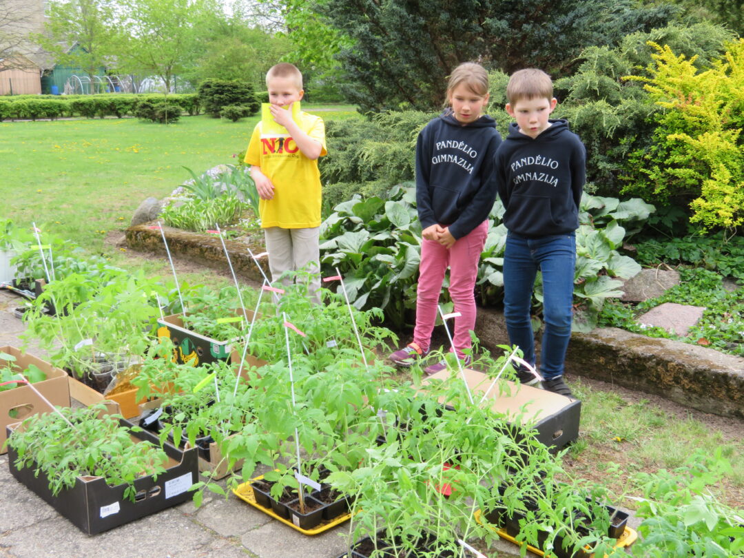 Mokiniai siūlė įsigyti jų išaugintų įvairių gėlių ir daržo augalų daigų bei sodinukų: kanų, pelargonijų, šalavijų, jurginų, paprikų, serenčių, gvaizdūnių, lobelijų… Pirkėjus viliojo žiedais pasipuošę šiltnamyje auginamų agurkų daigai. Visgi greičiausiai pirkėjai šlavė net keleto rūšių pomidorų daigus. Kai kurie susižavėjo smulkiažiedėmis violetinėmis našlaitėmis ir spalvotomis perkūnropėmis. Daigai ir sodinukai kainavo nuo 0,20 iki 1 Eur. Jaunieji ūkininkai drąsiai bendravo su pirkėjais. Jiems prireikė ir ūkininkavimo, ir matematikos žinių, nes pirkėjai pasirodė nepėsti – teiravosi apie auginimo sąlygas, veisles, klausinėjo kainų.
