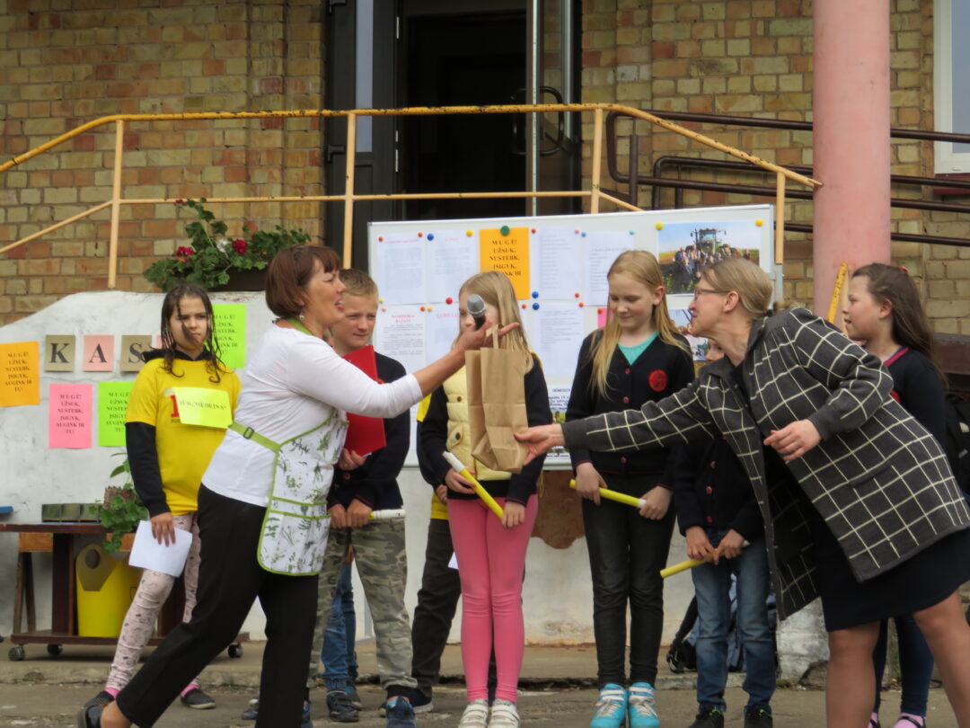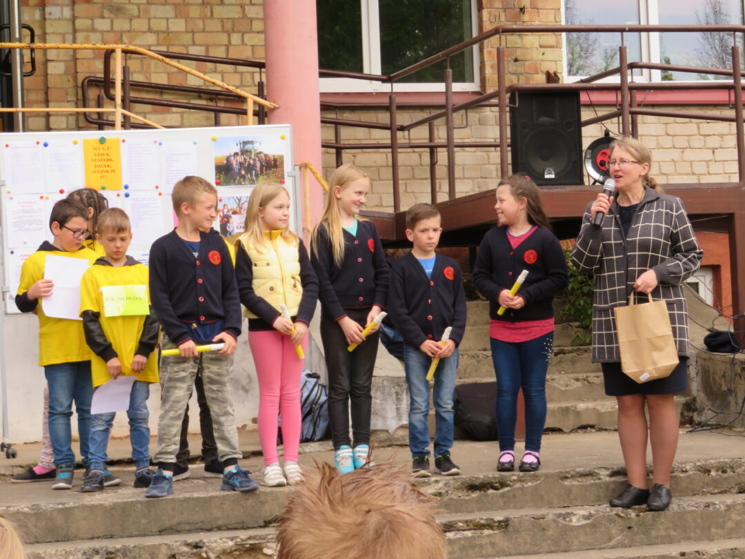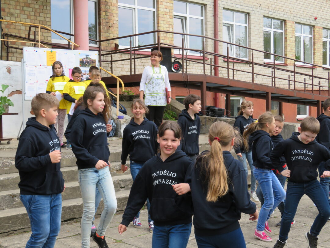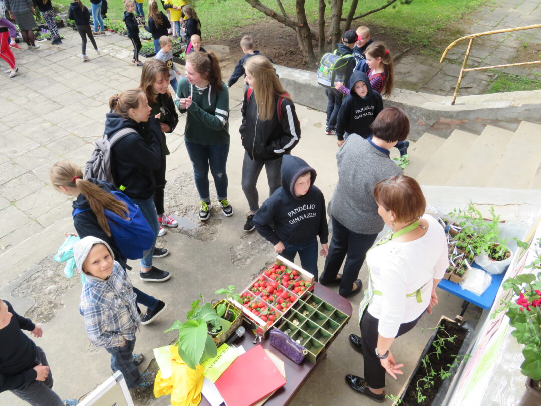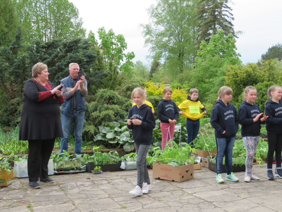 Į svečius pas pandėliečius atvyko Rokiškio Juozo Tūbelio progimnazijos jaunieji ūkininkai, vadovaujami mokytojos, Rokiškio jaunųjų ūkininkų asociacijos tarybos pirmininkės Ritos Vaitiekauskienės, bei rajono Ūkininkų sąjungos pirmininkė Lina Meilutė-Datkūnienė. Pastaroji gyrė išpuoselėtus augalus ir, linkėdama neprarasti optimizmo, padovanojo didžiulę dėžę didelių, raudonų braškių. J. Tūbelio progimnazijos pradinukai šeimininkus pasveikino dūdelėmis sugrodami šokio melodiją. Beje, šokių netrūko, nes aikštelėje prie surikiuotų dėžių su augalais šoko Pandėlio gimnazijos ketvirtokai.