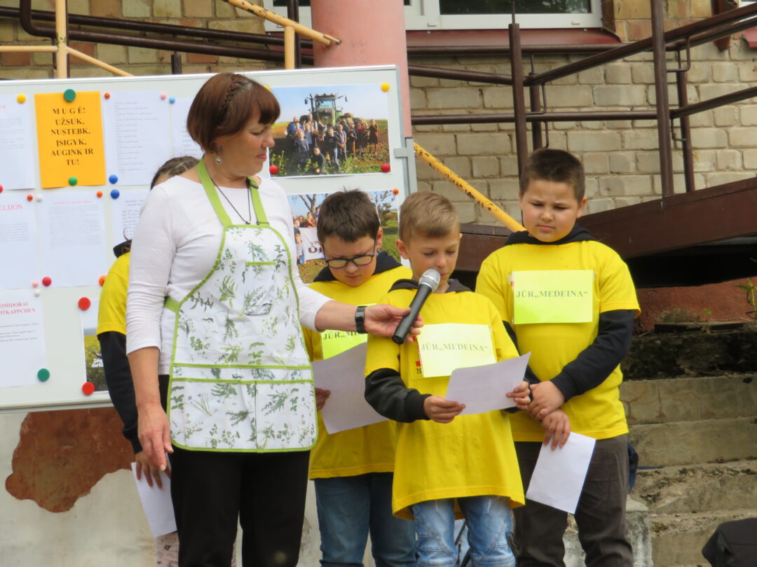 Kol vyko mugė ir vieni jaunieji ūkininkai derėjosi su pirkėjais, krovė į jų krepšius augalus, kiti, padedami būrelio vadovės Irenos Putkienės, pristatė būrelio veiklą, išvykas ir pasakojo, kiek įdėjo darbo išaugindami šiuos augalus. Net išvardino, kas įskaičiuota į jų kainą – sėklos, žemių substratas, vazonėliai, padėklai, trąšos, darbštumas, atsakomybė ir trijų mėnesių darbas. Augalai buvo sėjami ir auginami gimnazijos antrojo pastato laisvuose kabinetuose. „Didžiuojuosi tais, kurie dirbdami nebijo susipurvinti rankų ir batų“, – gyrė mokytoja. Šiuo metu būrelį lanko trylika 3–7 klasių mokinių.