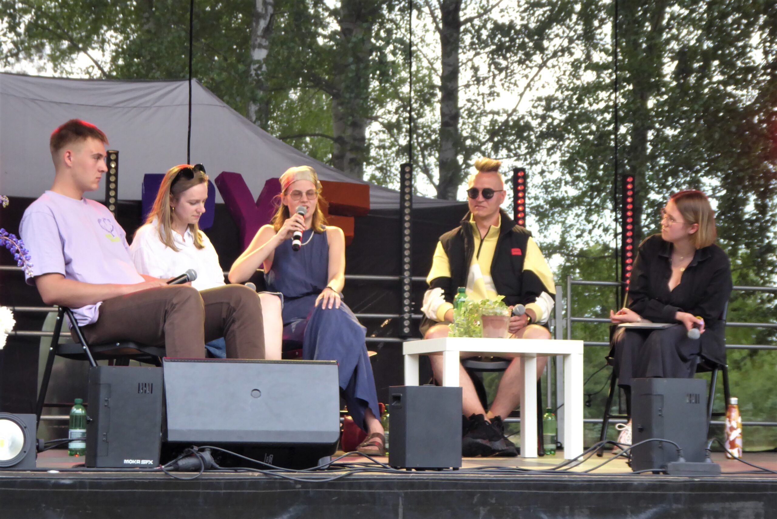 Į keturias diskusijas jaunimui (ir ne tik) aktualiais klausimais atvyko daugiau ar mažiau žinomi žmonės – dvi iš jų moderavo LRT radijo žurnalistas ir laidų vedėjas Edvardas Kubilius, dalyvavo aktorius, šokėjas, režisierius Gytis Ivanauskas, labiausiai išgarsėjęs kaip personažo Lolita Zero kūrėjas, socialiniuose tinkluose populiarus turinio kūrėjas Simas Anužis, žinomas kaip „Svarbeuse dariti“, profesionalus kikboksininkas Vitas Karosas, žinomas kaip „donthevito“, „Tik Tok“ žvaigždė Goda Kujavskytė, daugeliui žinoma kaip Goda Problema, bei vaikų literatūros žvaigždė Tomas Dirgėla. Ne už krosnies sėdėję ir kiti diskusijų moderatoriai bei dalyviai, turėję, ką pasakyti apie lyčių stereotipus, socialinius tinklus ir dėmesio vergus, požiūrį į jauną žmogų ir tai, ar iš Lietuvos bei Rokiškio išvykti visam, ar dar sugrįžti…