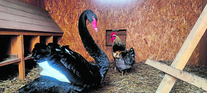 Tad ir gyvena tvartelyje du našliai – gaidys ir gulbė. Pasak ūkio savininkės Birutės Dapkienės, draugiškai gyvena. Gaidys sugyventinę rytais žadina giedojimu, ši, kad ir ne visai patenkinta, paburbėdama, paklūsta gaidžio dienotvarkei. Užtat abu per žiemą maitinsis sveikai – Birutės atnešamais šviežiu vandeniu, grūdais, šiaudais.