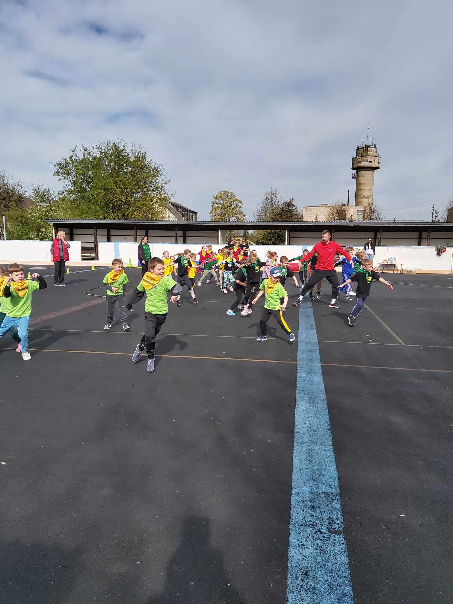 Pavasariškai šilta saulutė kvietė visus judėti, suteikė sportinės energijos ir geros nuotaikos. Vaikai, aktyvai pasimankštinę kartu su mokytoju Arnu Juškevičiumi, stojo komandomis dalyvauti estafečių rungtyse. Čia teko pademonstruoti ir greitumą, ir sumanumą, ir sportinius gebėjimus. Tik prasidėjus rungtynėms stadione pasirodė netikėtas, bet visiems gerai žinomas svečias – policijos bičiulis Amsis. Jis mielai prisijungė prie sportuojančių vaikų, o pasibaigus rungtynėms palydėjo visus iš Juodupės sadiono iki darželio, papasakojo ir parodė, ką reikia daryti, norint saugiai pereiti gatvę.