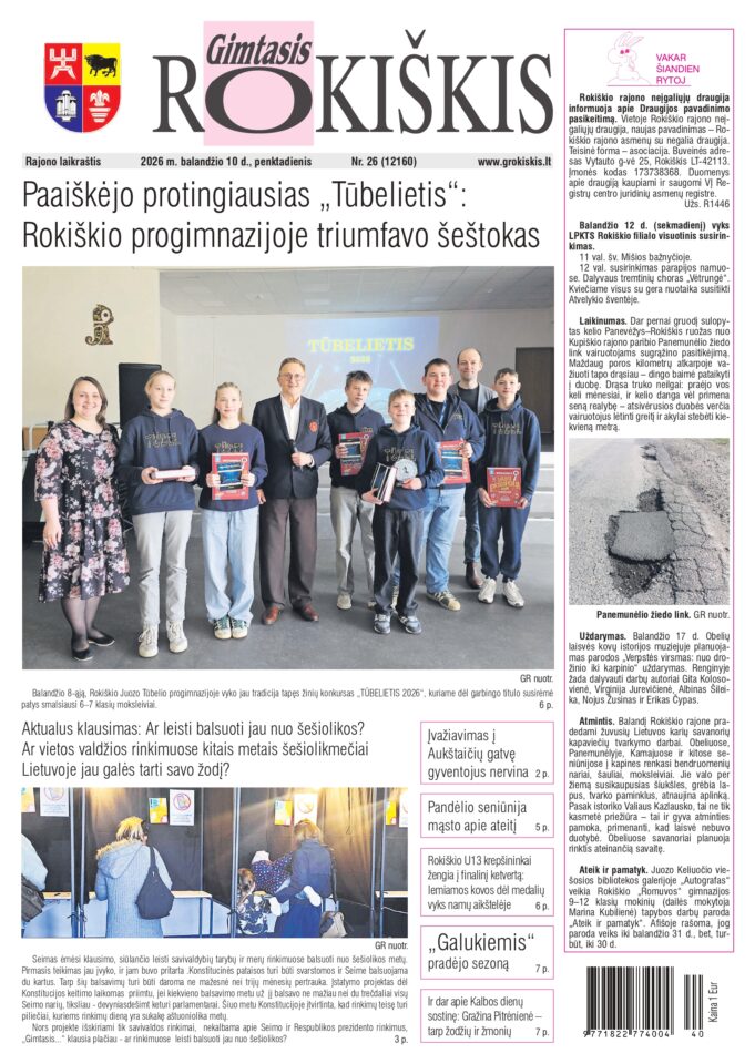 Naujausiame „Gimtojo Rokiškio“ numeryje – nuo karštų diskusijų Seime iki kasdienių mūsų krašto rūpesčių. Štai ką rasite šį kartą: