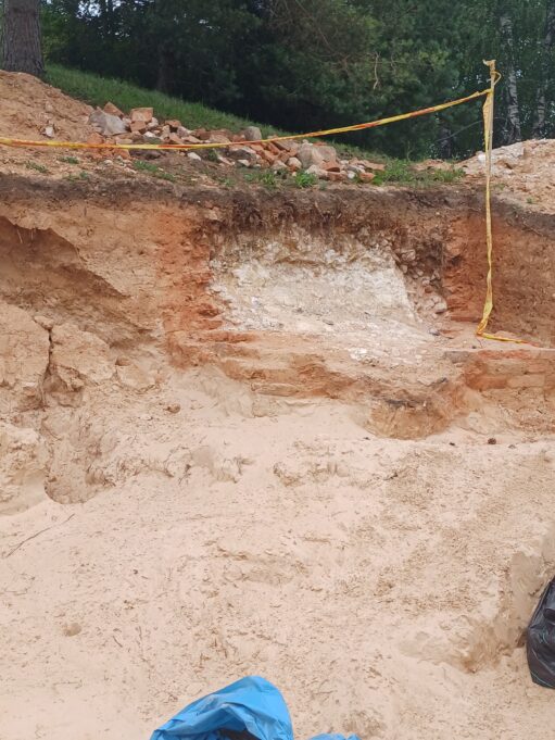 Išvykus išminuotojams, dar pasidairėme po kasinėjimų vietą. Jau ankstesniame etape nustatyta, kad palaidojimo duobių šioje vietoje būta keturių. Nukastos aikštelės kampe, prie žalios kapinių tvoros, rastos kalkių degimo krosnies liekanos. Spėjama, jog krosnis išlikusi iš tų laikų, kai buvo mūrijama senoji kapinių tvora.