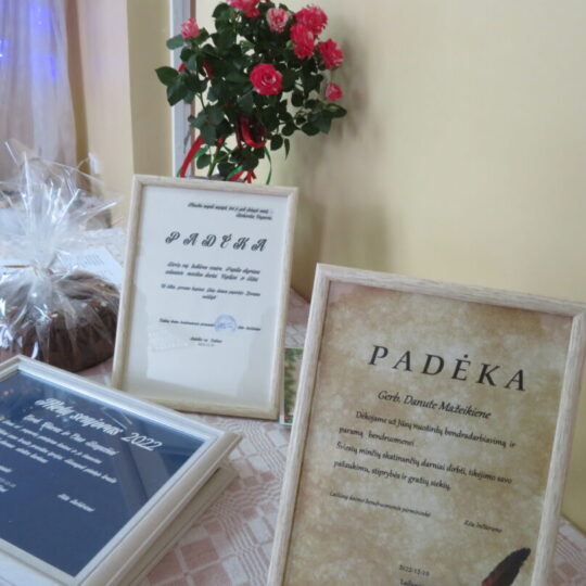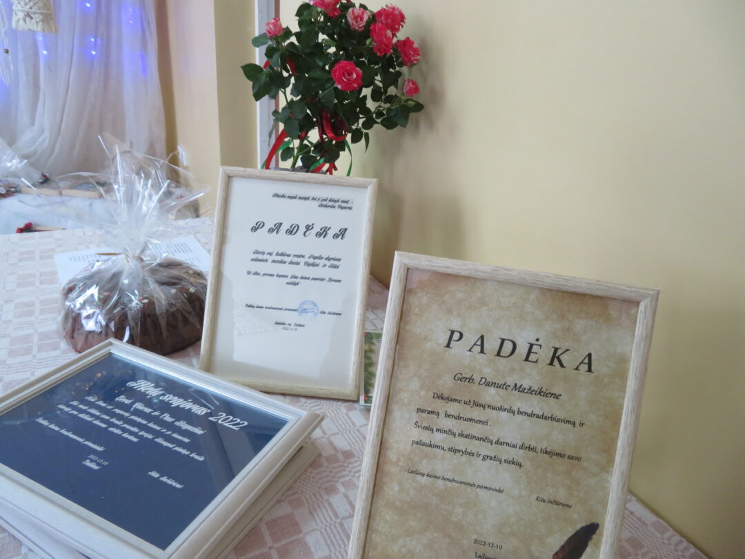 Kasmet Lailūnų kaimo bendruomenės aktyvo moterys pradžiugina senjorus, sulaukusius daugiau kaip 75 metų. Jos artėjančių Kalėdų proga paruošia rankų darbo dovanėlių ir įteikia popietės metu, o negalinčius atvykti aplanko namuose. Idėjų tokioms dovanoms visuomet turi lailūnietė Daiva Lukošiūnienė. Šįmet moterys prikepė kalėdinių meduolių ir juos supakavo į dailiai papuoštas dėžutes. Šios dovanos įteiktos popietėje dalyvavusiems senjorams, o kitus jos pasieks iki Kalėdų. Tokių saldžių dovanų sulaukė ir kaime gyvenantys ukrainiečių vaikai. D. Lukošiūnienei dėkota už edukacijų vedimą, kalėdinių dekoracijų kūrimą, kūrybiškumą ir kitas iniciatyvas, o bendruomenės aktyvui – už dalyvavimą edukacijose, kalėdinių dovanėlių ruošimą senjorams. Pasidžiaugta ir dar viena proga – šilti sveikinimai skirti jau 15 metų bibliotekoje dirbančiai Lailūnų kaimo bendruomenės pirmininkei Ritai Inčiūrienei.
