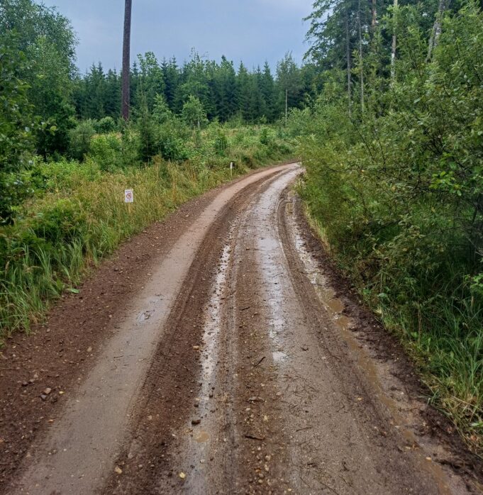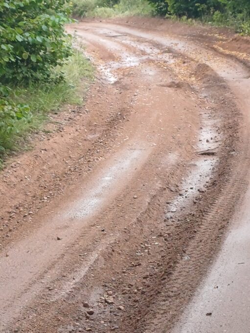 Žvyruotas vieškelis po lenktynių, galima sakyti, liko gana patenkinamos būklės – danga ne itin išardyta, gal kiek labiau starto vietoje. Tai žvyrkelio atkarpai atstatyti pakaks pravažiuoti greideriu, nors vietiniai sako, kad žvyro sluoksnis šiame kelyje nėra itin storas ir jį jau reiktų ne tik greideriuoti, bet ir žvyruoti.