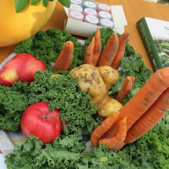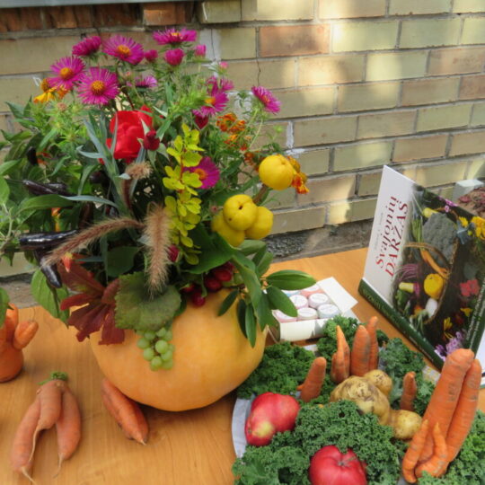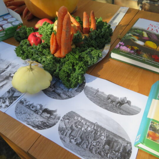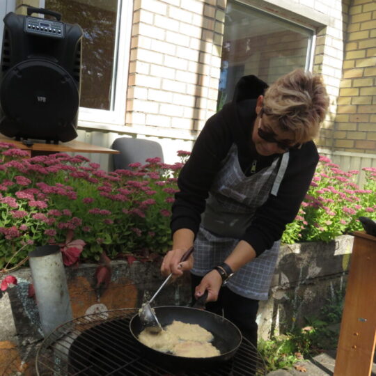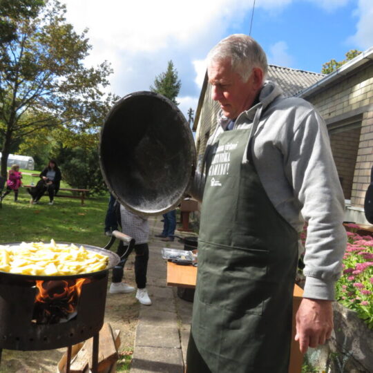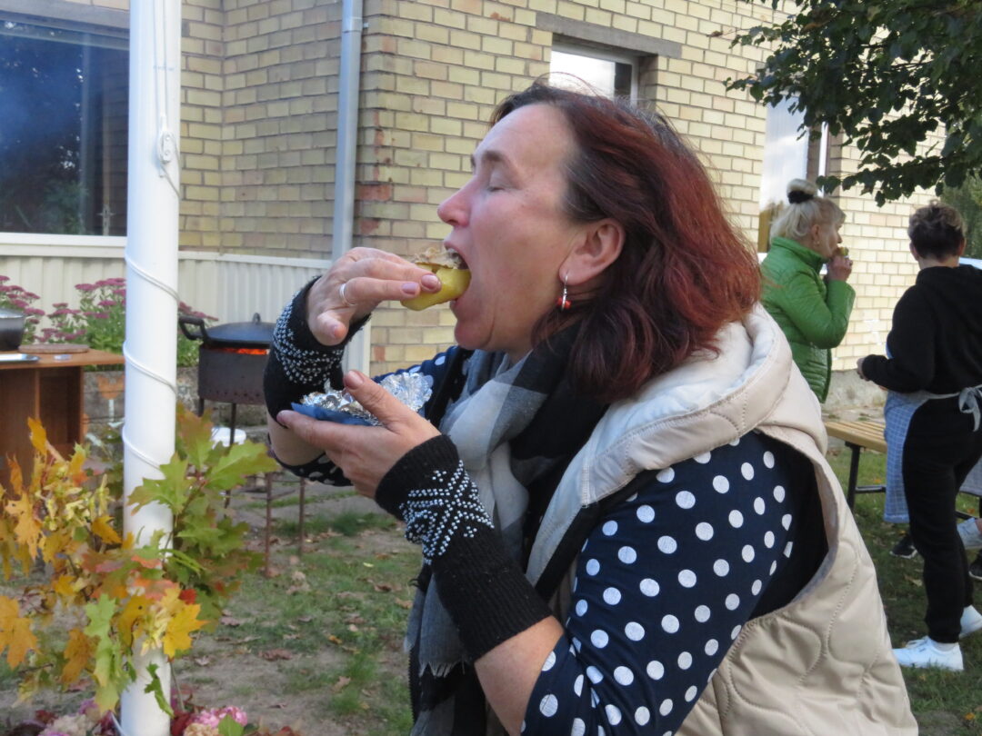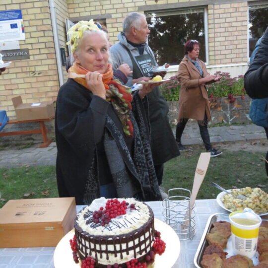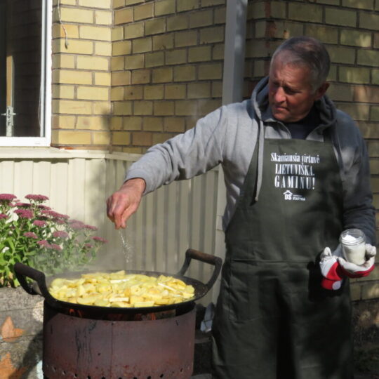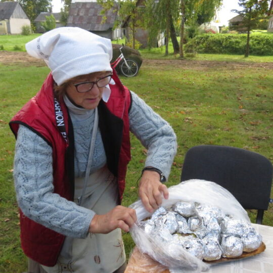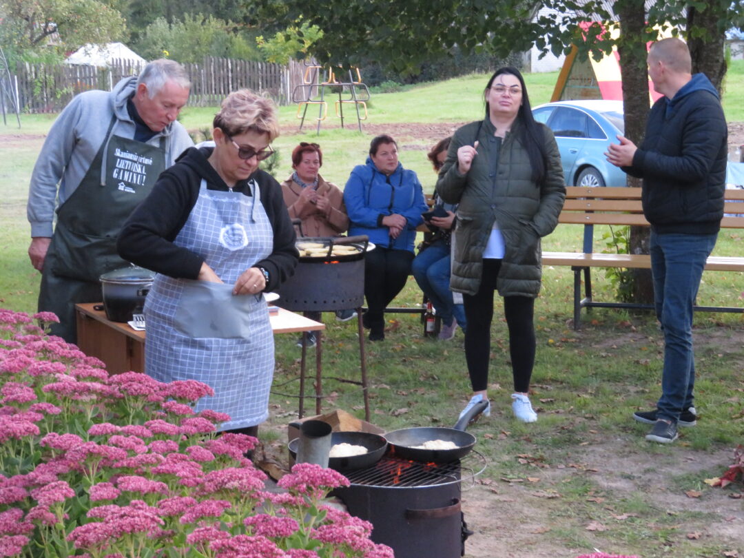Ant ugnies, keptuvėse, bulvinius blynus ir bulves kepė Gailutė Pitrėnienė bei Aleksandras Jegorovas. Kitiems patiekalams pagaminti reikėjo ilgesnio laiko, tad skemiškiai juos sunešė iš namų ir sudėjo ant bendro stalo. Ant jo puikavosi tai, kas tinka prie bulvių: karvių pieno rūgpienis, ožkų pieno varškė su grietine, raugintos daržovės, silkė su svogūnais ir kiti gardumynai, netgi tortas. Viešnios, Bajorų kaimo moterys, atvežė karštą patiekalą – mėsa įdarytų, folijoje keptų bulvių. Visus labai viliojo du patiekalai – Astos Jusienės išauginti ir paruošti shiitake (šitake) grybai su mažomis, krapais apibarstytomis bulvytėmis, bei didžiuliame, žaismingame, išskaptuotame moliūge paslėptas Aušros Streikuvienės punšas.
