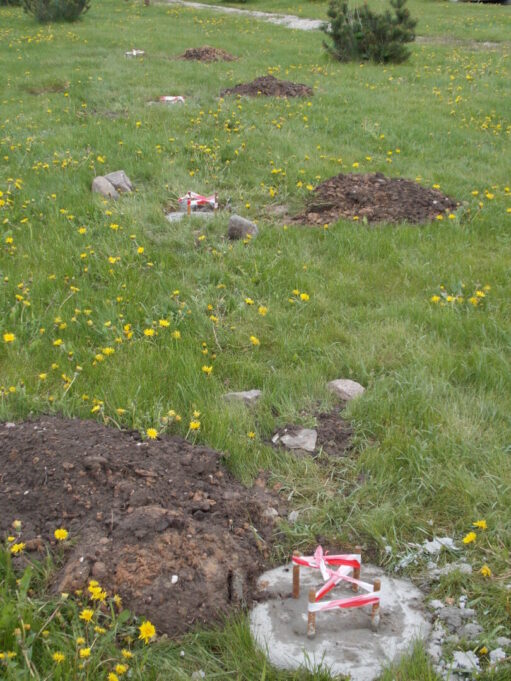 Kamajuose pradėti lauko treniruoklių aikštelės montavimo darbai – išlieti treniruoklių tvirtinimo pagrindai.