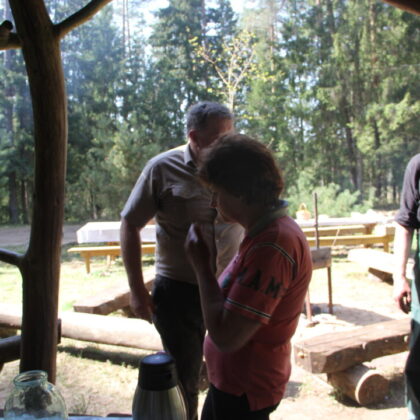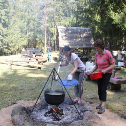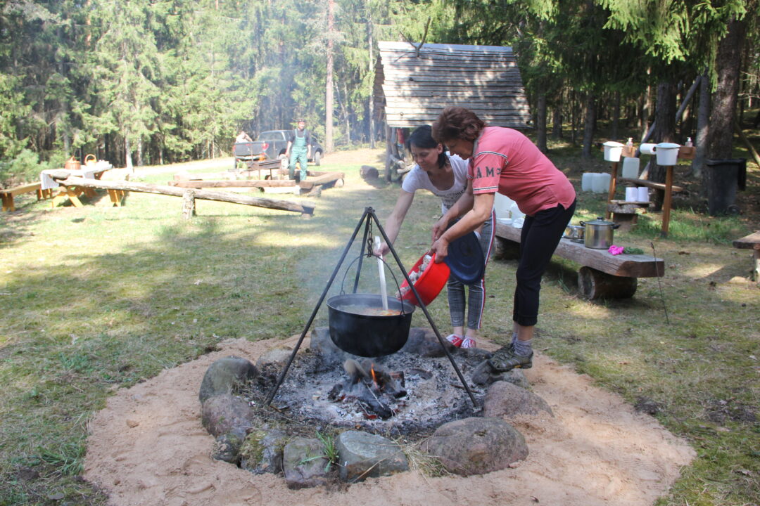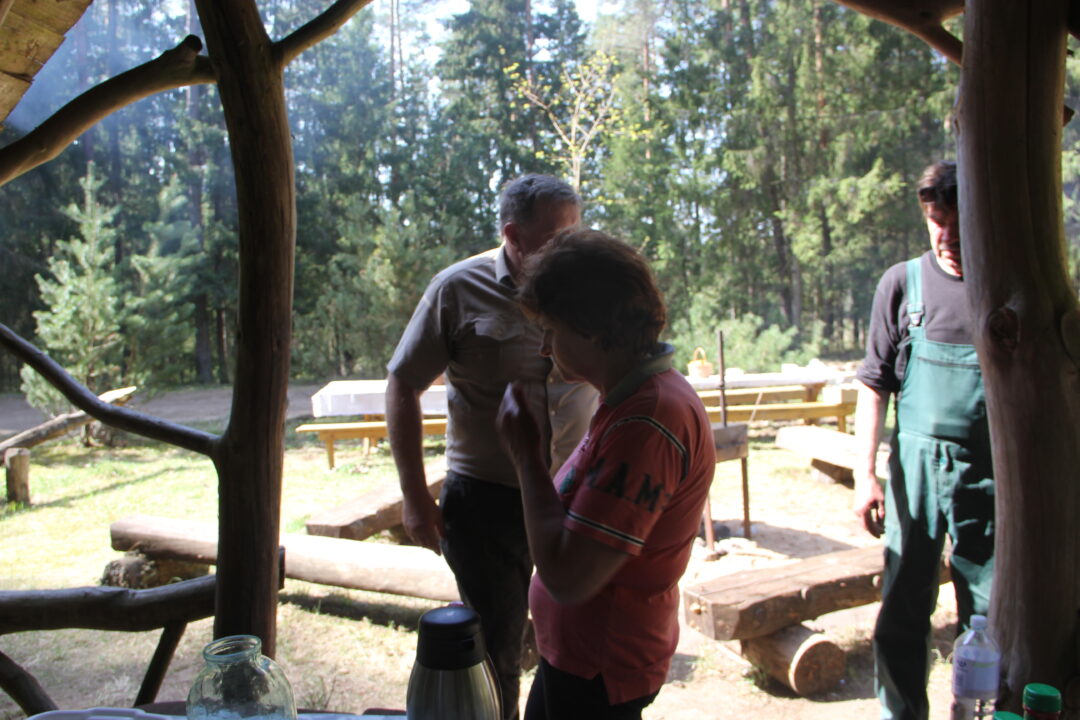 Po darbo talkos jaukioje poilsiavietėje dalyvių laukė miškininkų paruoštos vaišės: dviejų šeimininkių Rasų kelias valandas virta žuvienė su ežero žuvimi, gaivios salotos, viena jų – su Kamajų girininkijos gamtos įžymybe – meškiniu česnaku, pikantiškai paruošta mėsa, saldumynai ir gaivieji gėrimai. Pasibuvimas po prasmingo darbo buvo jaukus ir šiltas. Tradiciškai visi talkoje dalyvavę mišką mylintys talkininkai apdovanoti miškininkų mediniais medaliais ir miškininkų padėkos žodžiais…
