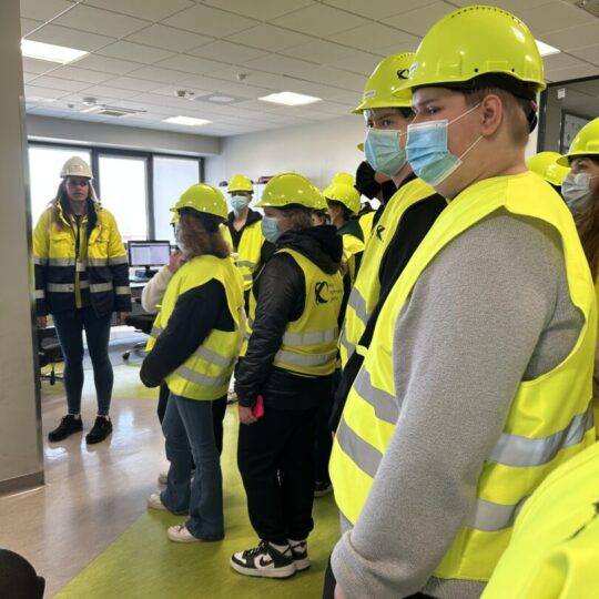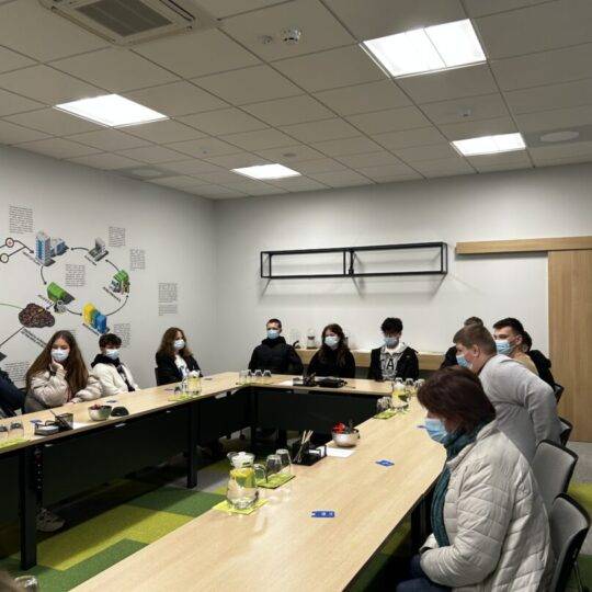 Pirmoji stotelė buvo Kauno kogeneracinė jėgainė. Ekskursija prasidėjo nuo įmonės aplinkosaugos skyriaus vadovės paskaitos apie įmonės veiklą, susipažinome su veiklos statistika. Svarbiausias akcentas – deginant pramonines ir komunalines atliekas yra gaunama elektros ir šilumos energija. Taip ne tik išvengiama sąvartynuose besikaupiančių atliekų kalnų, bet ir iš vietinio kuro pagaminama energija. Buvome įleisti į jėgainės technines patalpas, matėme visą procesą: nuo šiukšlių atvežimo, deginimo iki galutinių energijos šaltinių gavimo. Tai buvo labai naudinga ir įdomu mokiniams. Iš arti pamatėme procesus, kurie šiuolaikiškai sukuria visą atliekų tvarkymo grandinę. Įmonės aplinkosaugos specialistė labai skatino mokinius rinktis inžinierių, ekologų specialybes, kviesdama ateityje jungtis prie jų įmonių kolektyvo.
