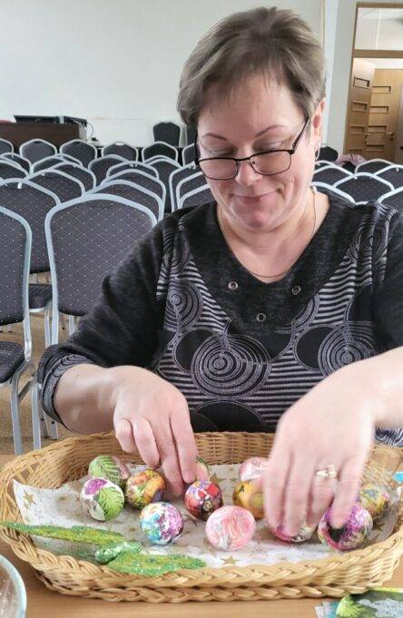 Galiu privardinti daug marginimo būdų. Pats mieliausias – ekologiškas dekupavimas, kada spalvotos servetėlės prie kiaušinio prilipdomos krakmolu arba kiaušinio baltymu. Vedu tokias edukacijas.