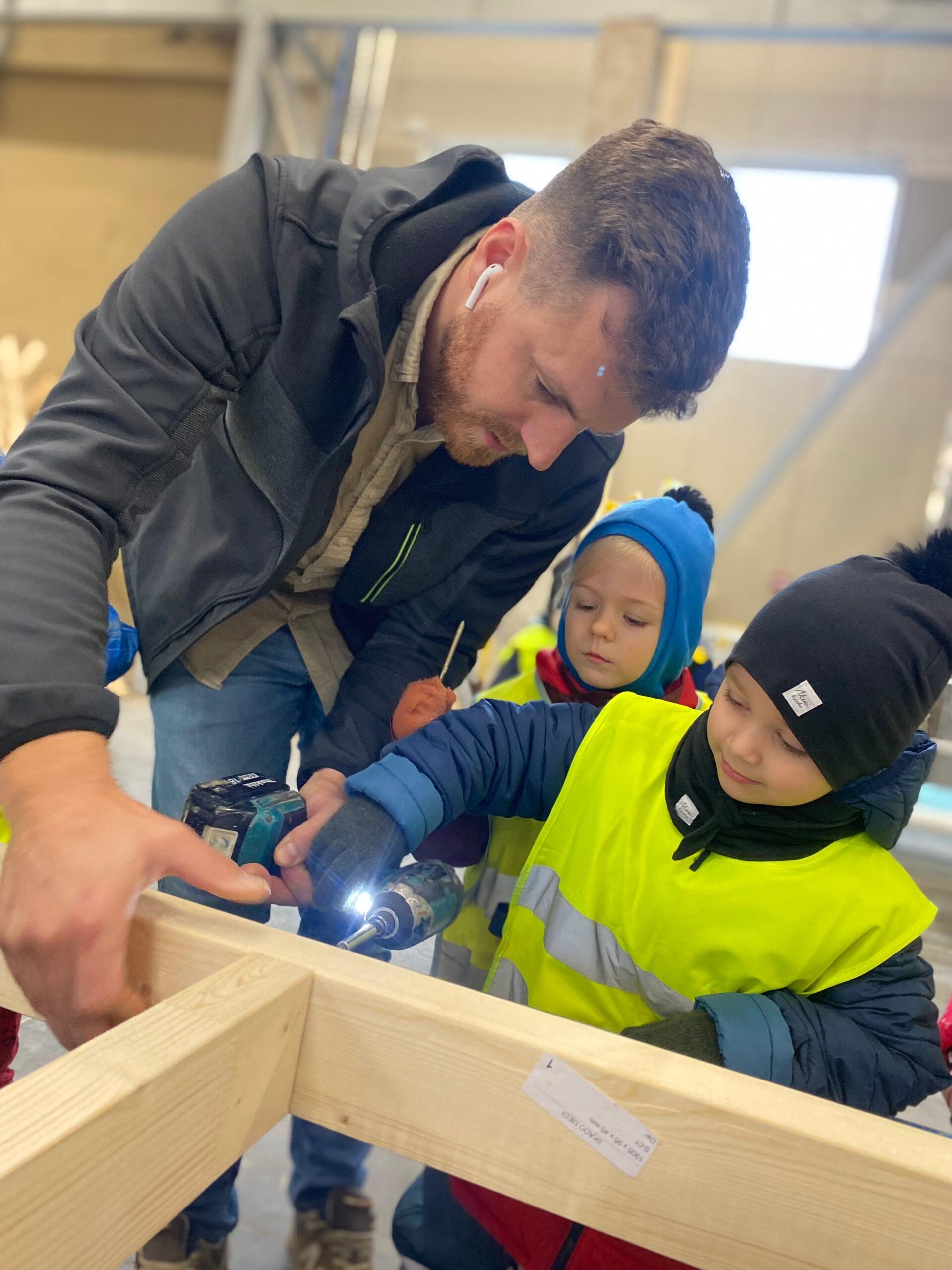 Rokiškio lopšelio-darželio „Varpelis“ „Lašiukų“ grupės auklėtoja Viktorija Davolienė ne tik džiaugiasi nauju šalia darželio pastatytu mediniu nameliu, bet ir tuo, kaip jis čia atsirado. „Lašiukų“ vaikams jau 4–5 metai ir jie po truputį pradeda susipažinti su įvairiomis profesijomis. Pirmiausia, žinoma, grupės vaikų tėvų profesijomis. Vaikai vaikščiodami po miestą nueina iki bibliotekos, užsuka į gyvūnų parduotuvėlę, mokosi kelio ženklų ir šviesoforo signalų. O neseniai vienas tėvelių pasikvietė visą grupę į savo darbovietę – UAB „Skado medis“. Čia vaikai apžiūrėjo visą gamybos procesą nuo brėžinių iki karkaso rinkimo ir namelio konstravimo, gavo palaikyti ir pabandyti įrankius, o pabaigoje sužinojo, kad namelis, kurio gamybos procese dalyvavo, bus pastatytas jų darželio kieme.