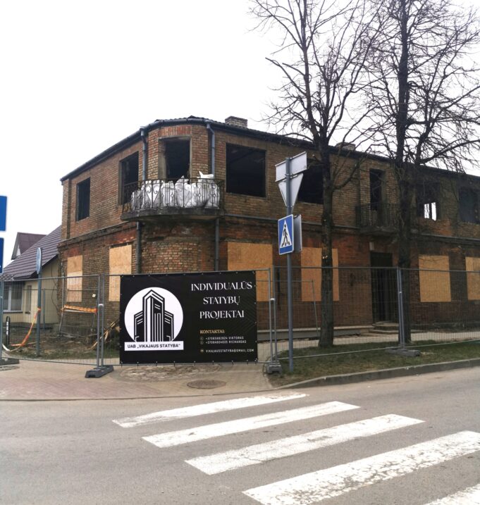Ir štai ant apsauginės namo tvoros atsirado tentas su užrašu „Vikajaus statyba“. Šios bendrovės vadovas rokiškėnas Viktoras Michailovas ir yra dabartinis pastato Kauno ir Algirdo gatvių sankirtoje savininkas. „Ar tikrai bus trečias aukštas?“ – teiravomės jo. „Šimtas procentų“, – atsakė jis.