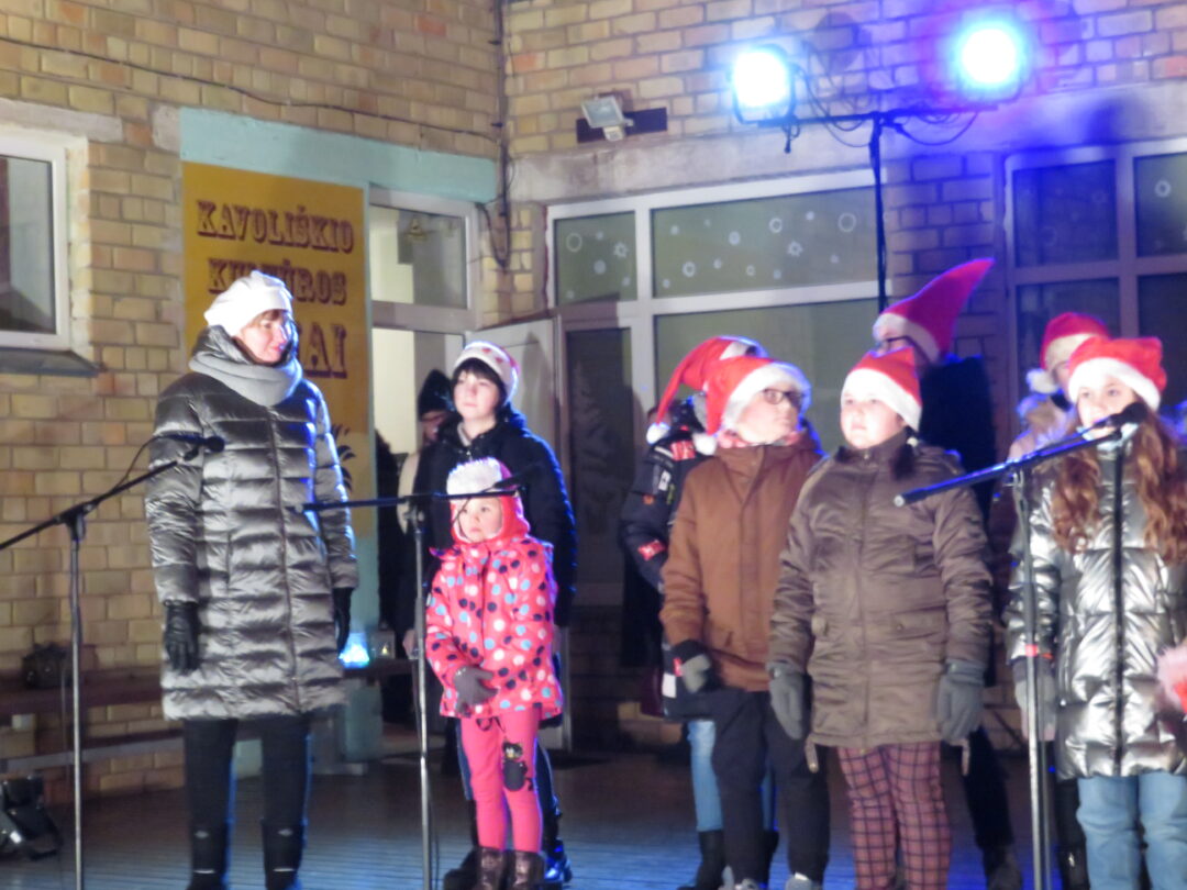 Penktadienio vakare Kavoliškio skvere eglutę įžiebė Kalėdų senelis ir didelis būrys vaikų. Atėjusieji pasižiūrėti reginio, klausėsi mažyčių nykštukų dainų, grožėjosi kultūros namų languose nušvitusiu spalvingu šešėlių teatru, pasekusiu pasaką apie šokoladą, gėrį, atleidimą ir meilę. Šią programą ruošė Rokiškio mokykla-darželis „Ąžuoliukas“ bei jo skyrius Kavoliškyje. Įžiebus eglutę, prie mikrofonų stojo suaugesni vaikai – Rokiškio Senamiesčio progimnazijos ir Rokiškio kultūros centro priemiesčio padalinio Žiobiškyje vokalinis ansamblis (vad. Aušra Kežutienė). Sulaukta svečių. Su artėjančiomis Kalėdomis kavoliškiečius sveikino Rokiškio dekanato dekanas Eimantas Novikas, rajono meras Ramūnas Godeliauskas, Rokiškio kaimiškosios seniūnijos seniūnė Dalia Janulienė.