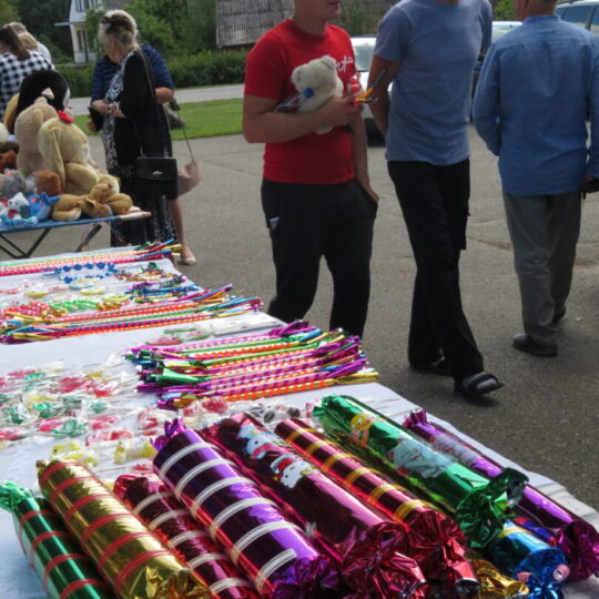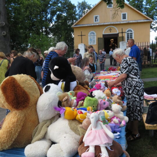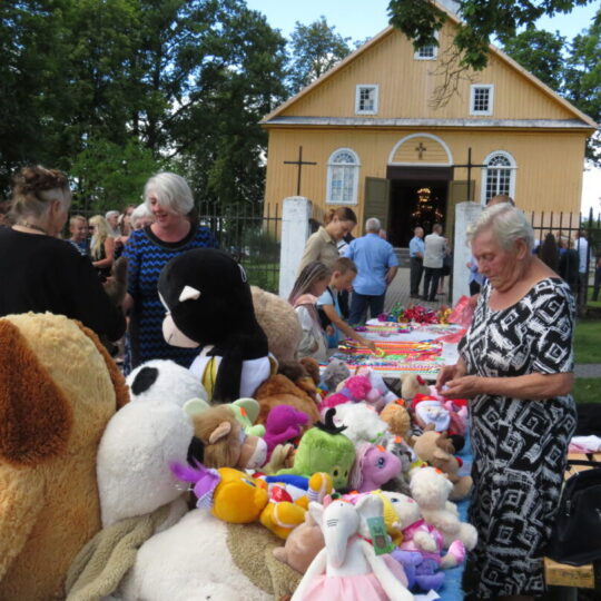 Sekmadienį, po šv. Stepono atlaidų bažnyčioje, vietiniai ir svečiai rinkosi seniūnijos kiemelyje. Kas ilgą, spalvotu popierėliu atvyniotą saldainį nešėsi, kas prie savęs glaudė loterijoje už 2 eurus išloštą minkštą žaisliuką.