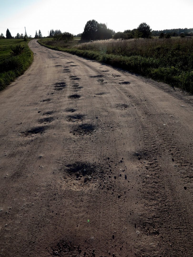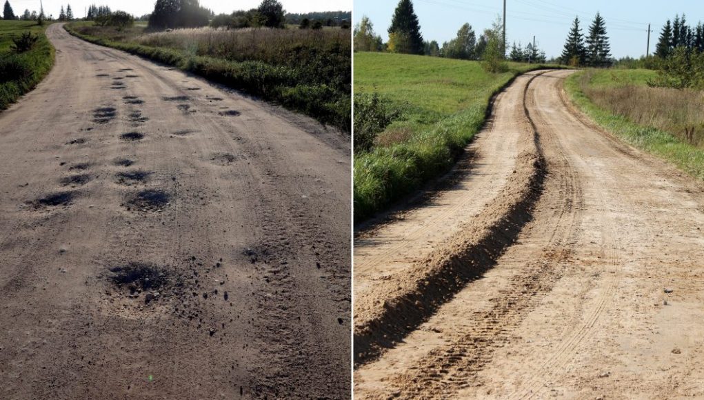 Seniūnės informacija pasitvirtino: būtent trečiadienį sunkioji technika sutvarkė sodų bendrijos „Aidas“ gyventojus erzinusias žvyrkelio duobes.