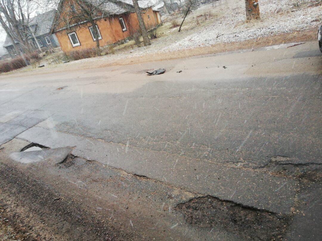 Anot jo, kelininkai per žiemą atsiradusias duobes užpylė asfaltu, apačioje patiesdami… maišus. Toks būdas, anot kriauniškio, nepasiteisino – asfaltas netrukus išlakstė gabalais.
