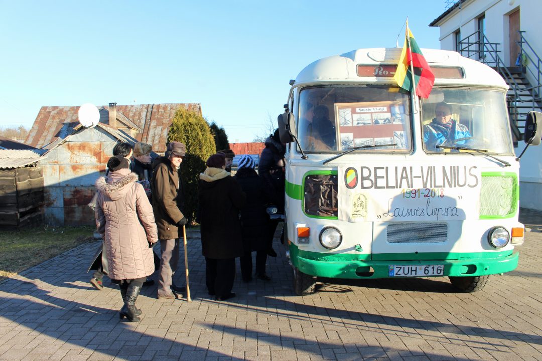 Į Vilnių Sausio 13-sios išvakarėse iš Obelių išvyko du sovietiniai PAZ markės autobusai. Vienas jų, priklausęs tuometiniam Obelių internatui, kelionės išvakarėse sugedo, tačiau, rūpestingo vairuotojo Bronislavo Pupelio sutvarkytas, jis išriedėjo ir tapo svarbia parlamento barikadų dalimi. Kalbintas vairuotojas gerai prisimana tą dieną, lyg toji būtų buvusi vakar. „Tą diena autobusas buvo pilnas – jame važiavo 24 žmonės. Iš Obelių pajudėjome į Vilnių. Pradžioje buvo planuota, kad autobusu važiuosime prie televizijos bokšto. Tačiau planai keitėsi, atšaukė ir važiavome prie Parlamento. Būtent ten sustatėme autobusus taip, kad pro tarpus nepralystų žmonės. Autobuse palikome viską, net maistą. Vėliau ir patys negalėjome į vidų patekti. Baisiausia buvo, kai pradėjo važiuoti tankai…“, – trumpais prisiminimais dalijosi obelietis.