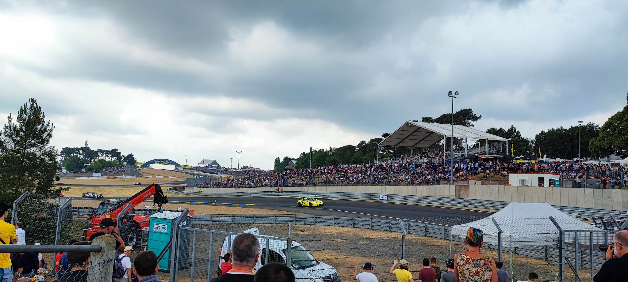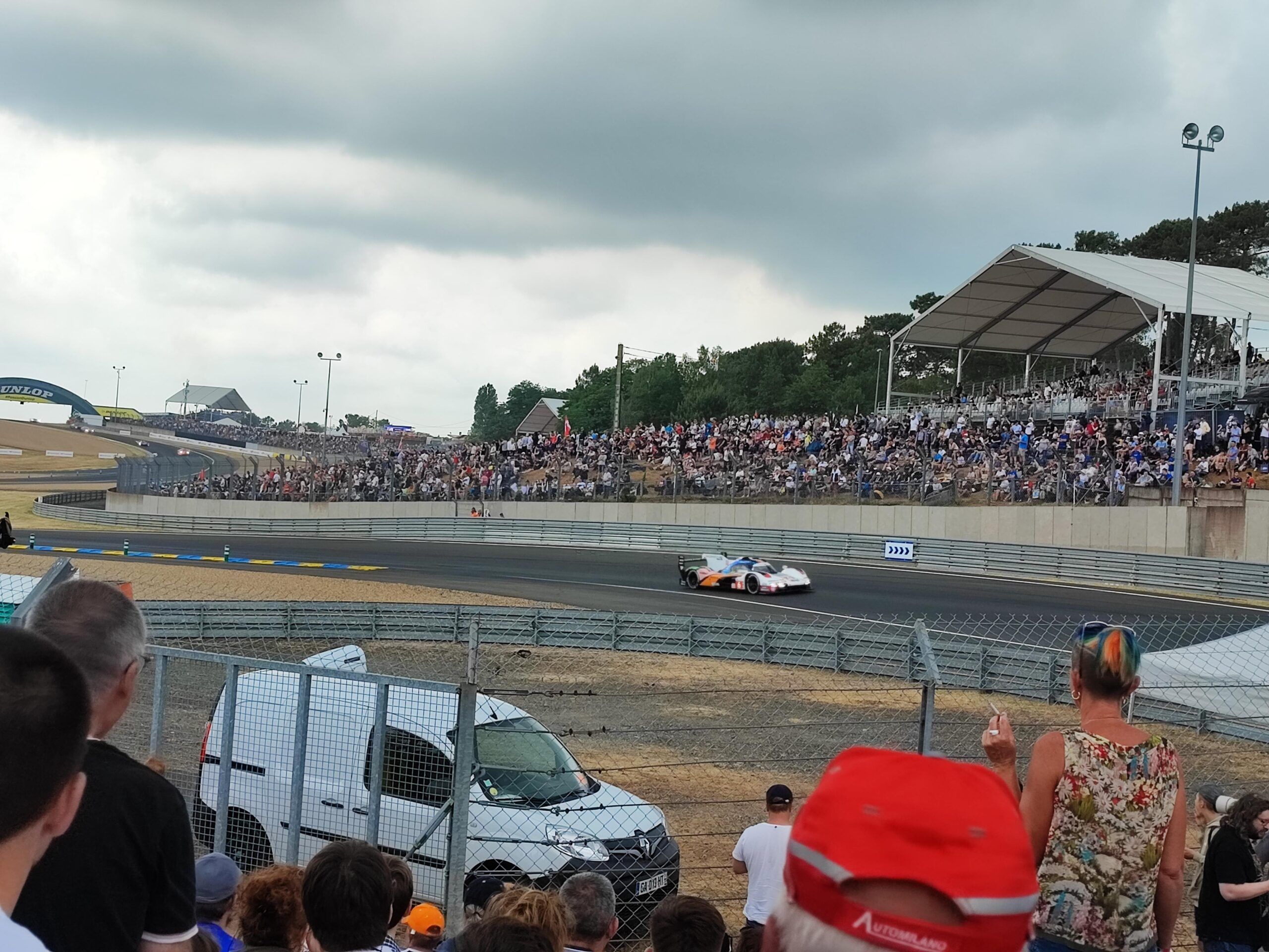 Aprašyti pačias lenktynes būtų sunku. Jos tradiciškai prasidėjo naikintuvų ir bombonešio paradu, kurie paskui save paliko Prancūzijos vėliavos spalvų šleifą, o trofėjų į trasą atgabeno karinis malūnsparnis. Prasidėjus „apšilimo“ ratui daugiau nei 60 lenktyninių automobilių pro tave praskrenda tokiu garsu, kad kūnas eina pagaugais. Verta paminėti, kad tie 60 automobilių varžėsi trijose skirtingose (techniškai keturiose) klasėse: „Hypercar“ patys galingiausi ir greičiausi hibridiniai automobiliai, LM P2 kiek lėtesni, bet vis dar „kosmiškai“ atrodantys sportiniai bolidai ir LM GTE AM klasė, kurioje varžosi kiek labiau akiai pažįstami automobiliai. Pažiūrėję lenktynių startą, kai automobiliai didžiuliu greičiu pralekia pro tave ir beveik visi identiškoje vietoje perjungia bėgius, o tu išsižiojęs viską stebi, nusprendėme, kad laikas aplankyti ir kitas trasos vietas. Čia turbūt reikėtų akcentuoti, kad šios lenktynės (kaip ir dauguma kitų) nėra tiesiog stebėjimas ištisą parą pravažiuojančius automobilius. Aplink trasą įkurti netgi trys „kaimeliai“, kur laukė įvairios pramogos, komandos pardavinėjo savo atributiką, galėjai apžiūrėti ateityje trasoje pasirodysiančius automobilius ar senesnius šių lenktynių atstovus. Ką jau kalbėti apie „parkingą“, kuriame šimtai įvairių prabangių sportinių automobilių iš „Ferrari“, „Aston Martin“ ir kitų firmų. Matėme ir tokių kuriozinių situacijų: kai trasos prieigose „numestas“ automobilis, kurio kaina peržengia 5 nulių zoną. Jis visas apdulkėjęs su rankų antspaudais, o už jo vyriškis atlieka gamtinius reikalus. Kur tokį vaizdelį pamatysi Lietuvoje? Beje, tokių žmonių, kurie „žymėjo teritoriją“, buvo nemažai, nors eilės patekti į tualetą nedidelės. Tai turbūt vienintelis blogą įspūdį palikęs prisiminimas.