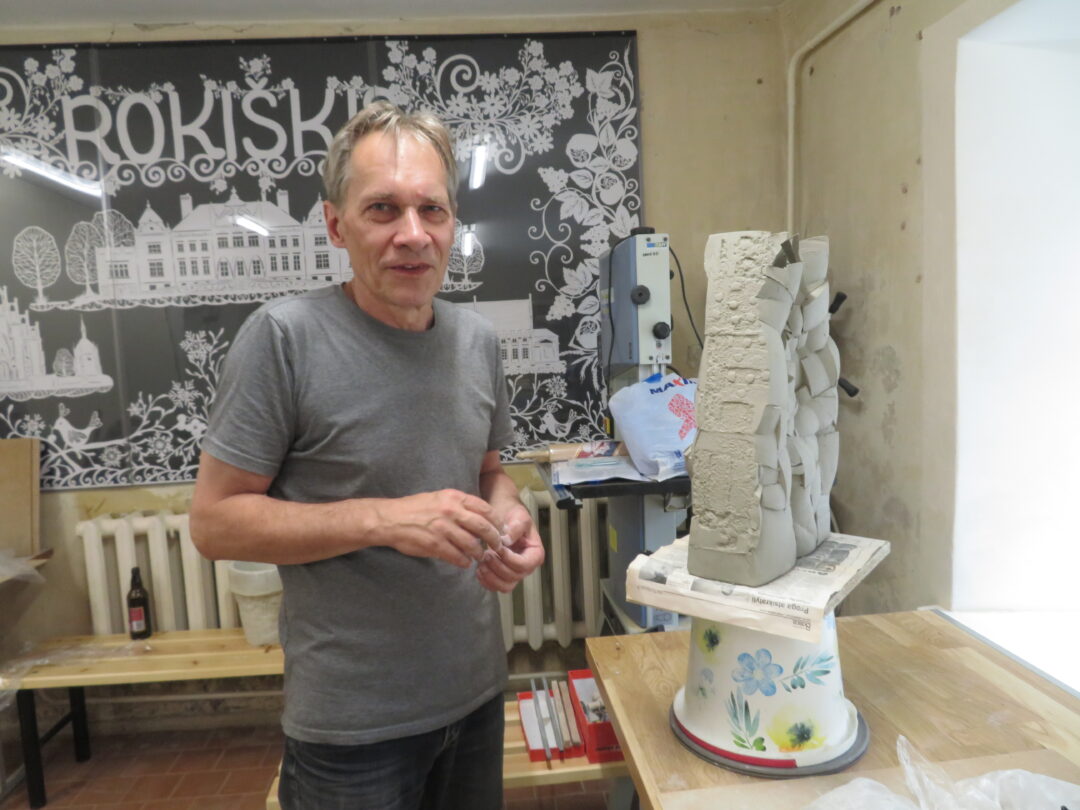 Ketvirtadienio popietę dvaro dirbtuvėse nebesijautė kūrybinių aistrų ar ieškojimų, mat dalis keramikos darbų jau džiūvo krosnyje, o jų autoriai leidosi pasivaikščioti vaizdingomis apylinkėmis, savuosius kūrinius dar lipdė, dailino keturi keramikai. Visi pristato savo individualų stilių.