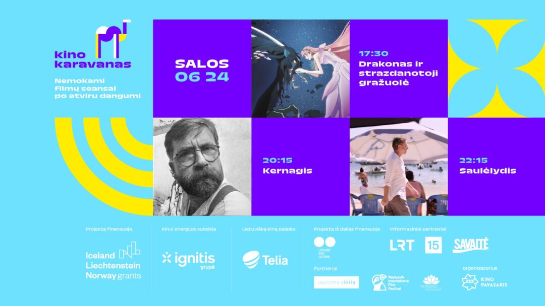 Birželio 24 d. KINO KARAVANAS Jonines švęs Salose, kur visus pakvies į trijų filmų peržiūras Salų dvaro kultūros ir laisvalaikio rezidencijoje (Kaštonų g. 13) įsikursiančiame lauko kino teatre. 17.30 val. bus rodomas anime nuotykis visai šeimai „Drakonas ir strazdanotoji gražuolė“, 20.15 val. pirmasis dokumentinis pasakojimas apie vieną garsiausių visų laikų Lietuvos artistų – filmas „Kernagis“, o 22.15 val. įtempta ir paslaptinga istorija apie šeimą – kitokią, nei atrodo iš pirmo žvilgsnio, – „Saulėlydis“.