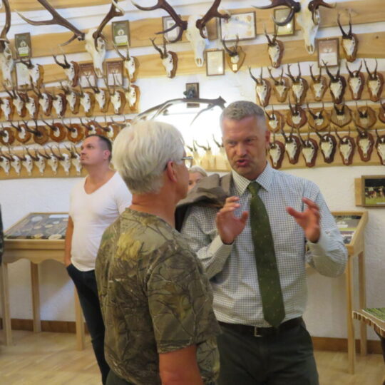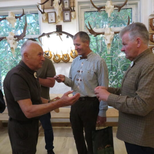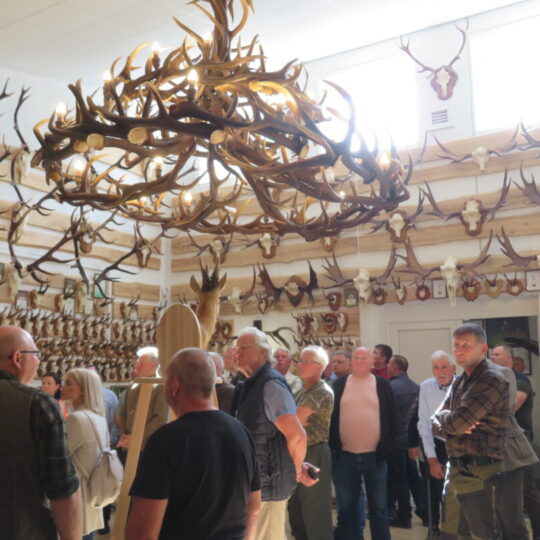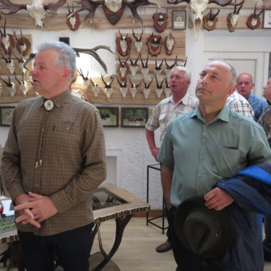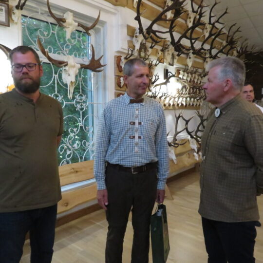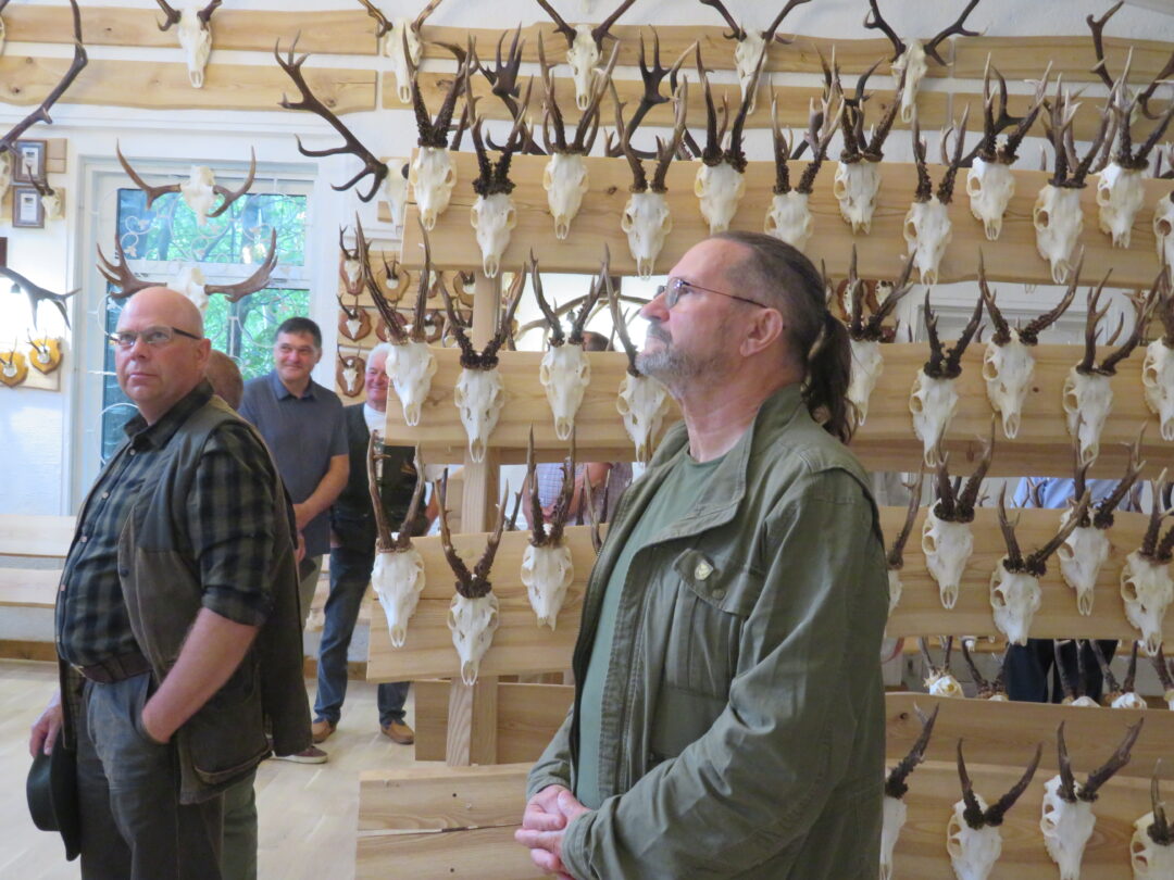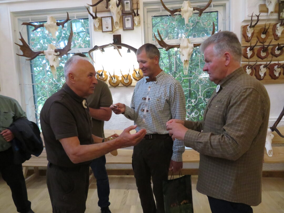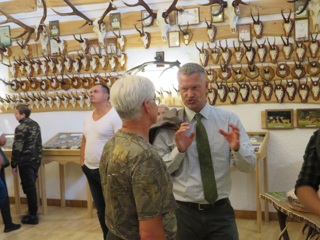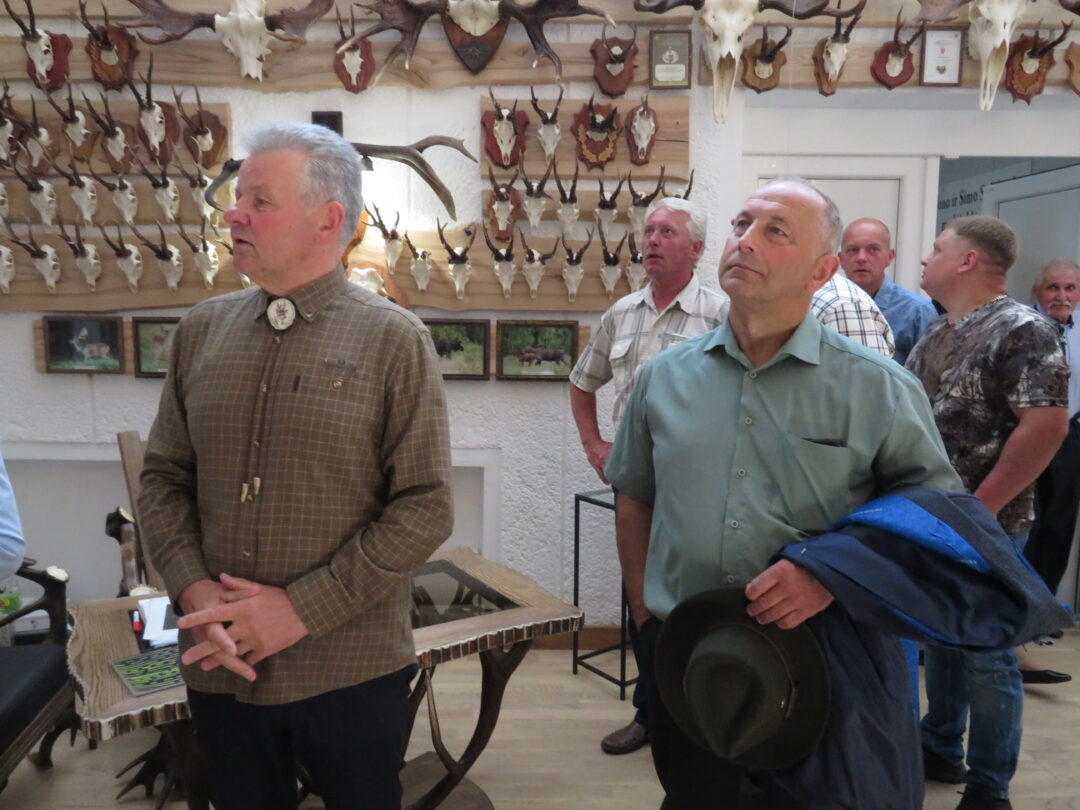 Ne veltui šventė pradėta Medžiotojų ir žvejų draugijos Rokiškio skyriaus pastate. Čia nuolat veikia unikali medžioklės trofėjų paroda, kurioje eksponuojami vienos šeimos – Jono ir Simo Smalinskų tik Rokiškio krašte sumedžiotų gyvūnų trofėjai. Jos įspūdingiausius eksponatus pristatė, medžioklės istorijas pasakojo bei trofėjų subtilybes atskleidė J. Smalinskas. Parodoje virš tūkstančio trofėjų, tačiau šiuo metu patys geriausi 28 yra iškeliavę į respublikinę medžioklės trofėjų parodą Raudonės pilyje (Jurbarko r.). Tarp jų – ir 2021 m. sumedžioto tauriojo elnio ragai, kurie, pasak žinovų, respublikoje patenka į geriausiųjų dešimtuką.