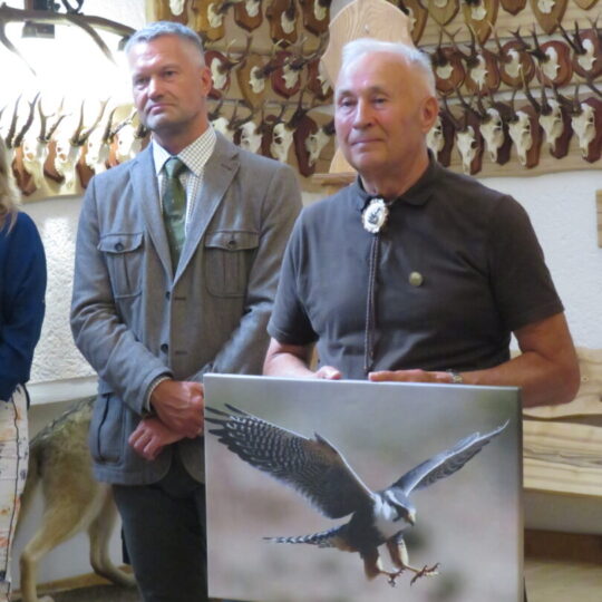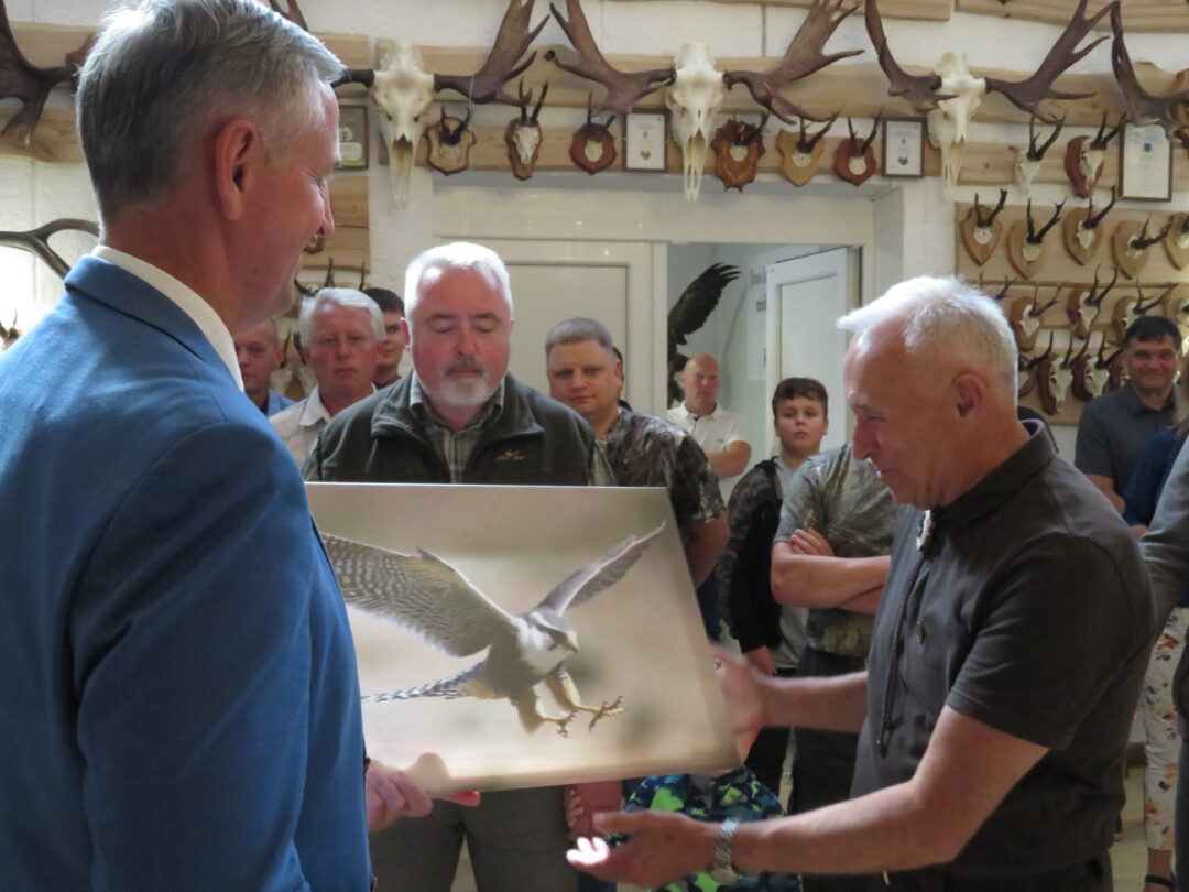 Rokiškio rajono meras Ramūnas Godeliauskas, sveikindamas klubą, linkėjo būti gero medžiotojų įvaizdžio ambasadoriais, kad vaikai ir vaikaičiai pagarbiai galėtų sakyti, jog jų tėtis ar senelis yra medžiotojas. Klubo vadovui įteikė dovaną – fotografiją, kuriose užfiksuotas skrendantis sakalas.