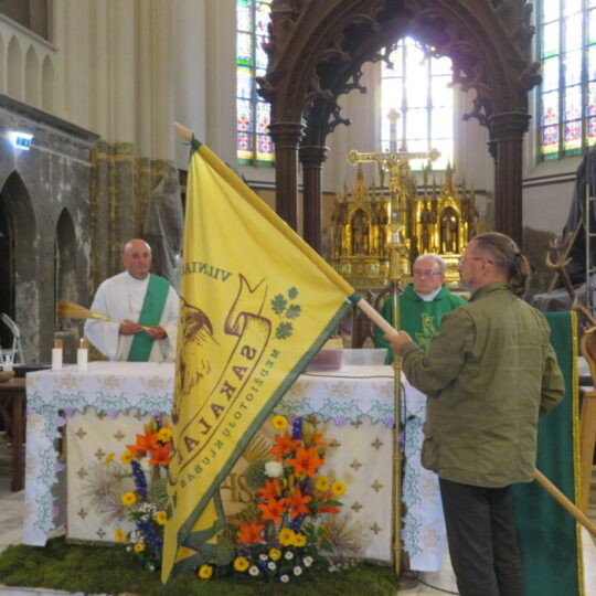 Vakare Rokiškio Šv. apaštalo evangelisto Mato bažnyčioje aukotos iškilmingos šv. Mišios. Jų metu pašventinta klubo vėliava, pasimelsta už anapilin išėjusius klubo narius.