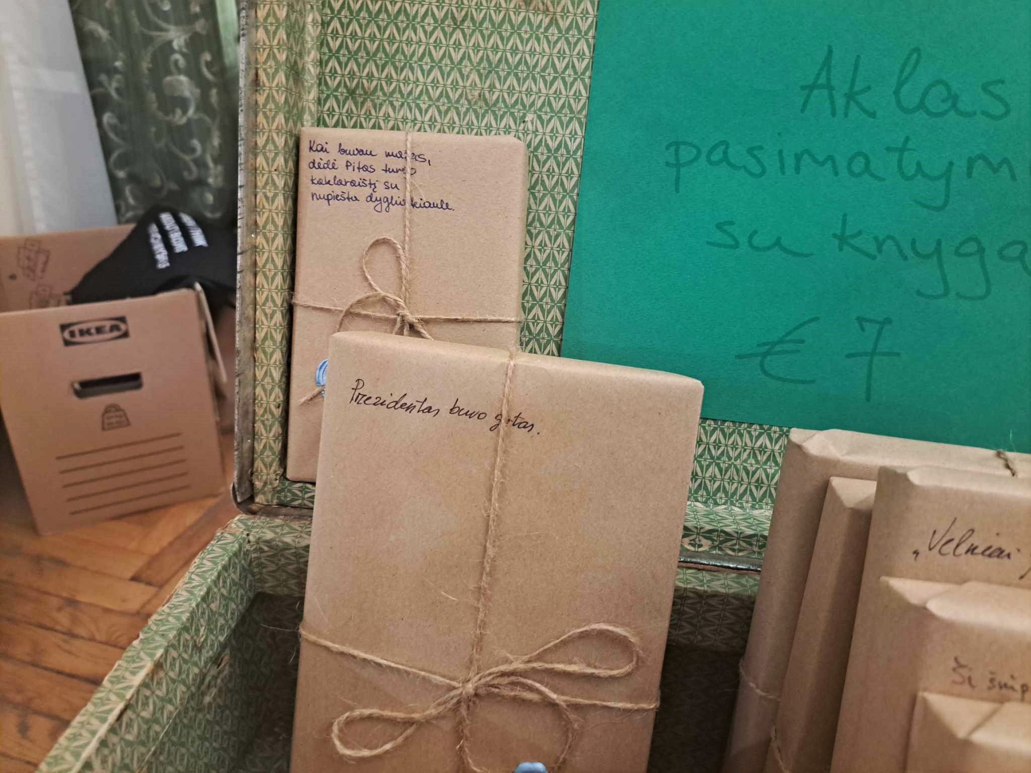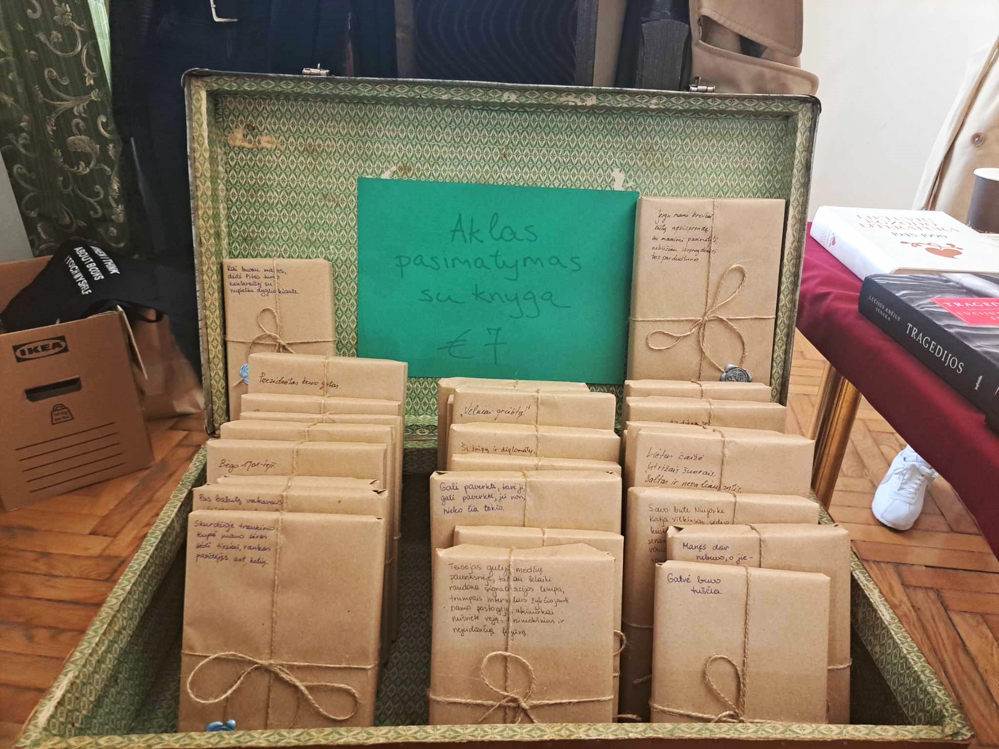 Dažnas mugės lankytojas buvo kažką atnešę kitiems pasiūlyti, o išeinančio tuščiomis neteko sutikti nė vieno. Daugiausia knygų į mugę atsivežė Gintaras iš Čedasų. Visam knygų asortimentui išdėlioti vieno stalo neužteko. Kai kurie nusprendė prie mugės prisidėti simboliškai, atsinešdami porą ar kelias knygas. Išskirtinis dalyvis – knygynas „Mint Vinetu“, skaitytomis knygomis prekiaujantis Vilniuje. Čia knygos superkamos iš skaitytojų, įkainojamos ir parduodamos. Knygyne veikia jauki kavinukė, kurioje galima išgerti kavos, kakavos, pasišnekučiuoti jaukioje senų knygų apsuptyje. Kaip vėliau vykusioje diskusijoje sakė bukinistas J. Valonis, praėjusią vasarą čia netgi įvyko vestuvės. Gali būti, kad pasisėdėjimas knygyno kavinukėje suvedė dar ne vieną porą. Knygynas mugėje siūlė ir savo mėgstamą atrakciją – aklą pasimatymą su knyga. Skirtos šiai savotiškai loterijai knygos skaitytojus pasitiko suvyniotos į vyniojamąjį popierių, ant kurio užrašytas tik pirmas knygos sakinys. Nei autorius, nei pavadinimas, viršelio dizainas besirenkančiam nėra žinomi. Pavyzdžiui, po fraze „Prezidentas buvo girtas“ slėpėsi rašytojo, visuomenininko, žurnalisto Andriaus Tapino knyga „Prezidentas“.