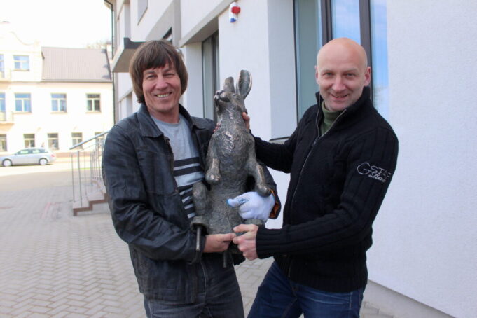 Pagaliau Rokiškyje atsirado normali stilinga mažoji skulptūra. Kiškio autoriai – skulptorius Sergejus Plotnikovas ir architektas Saulius Druskis – ją statyti rinkosi iš keturių vietų. Apsistota prie renovuoto J. Keliuočio viešosios bibliotekos pastato. S. Plotnikovas – vienas žinomiausių pamario krašto architektų, kurio darbų yra ir Klaipėdoje, ir kituose Lietuvos miestuose. Jis šypsojosi pasakodamas legendas ir svarstė, jog kiškis galbūt ne vieną paskatins domėtis Rokiškio atsiradimo istorija. Rokiškis iki šiol neturėjo nė vienos mažosios skulptūros, nors diskusijų apie tai būta – nuo kiškio iki Džono Lenono, nuo Tyzenhauzų iki popso.
