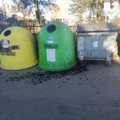 Tai ne vienintelis kartas, teko pastebėti pastatytų su panaudotu tepalu talpų prie konteinerių.