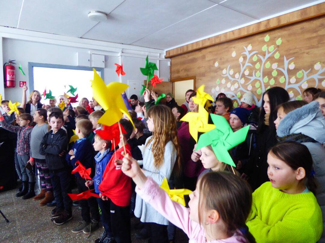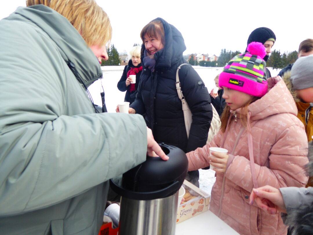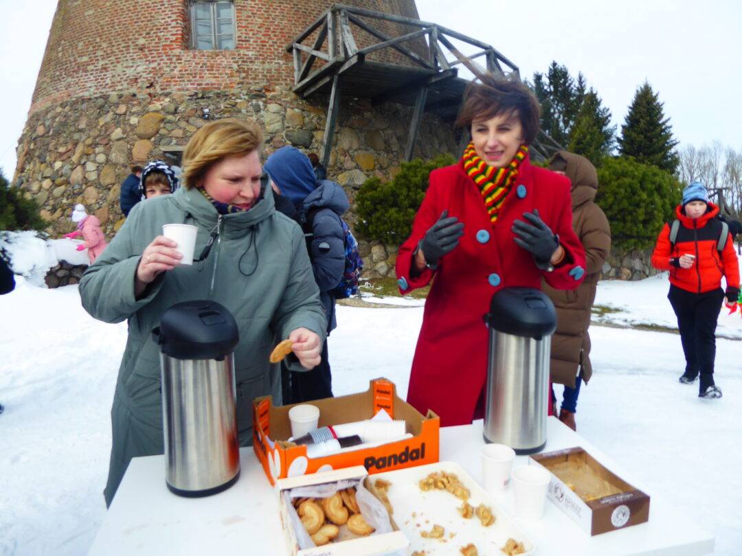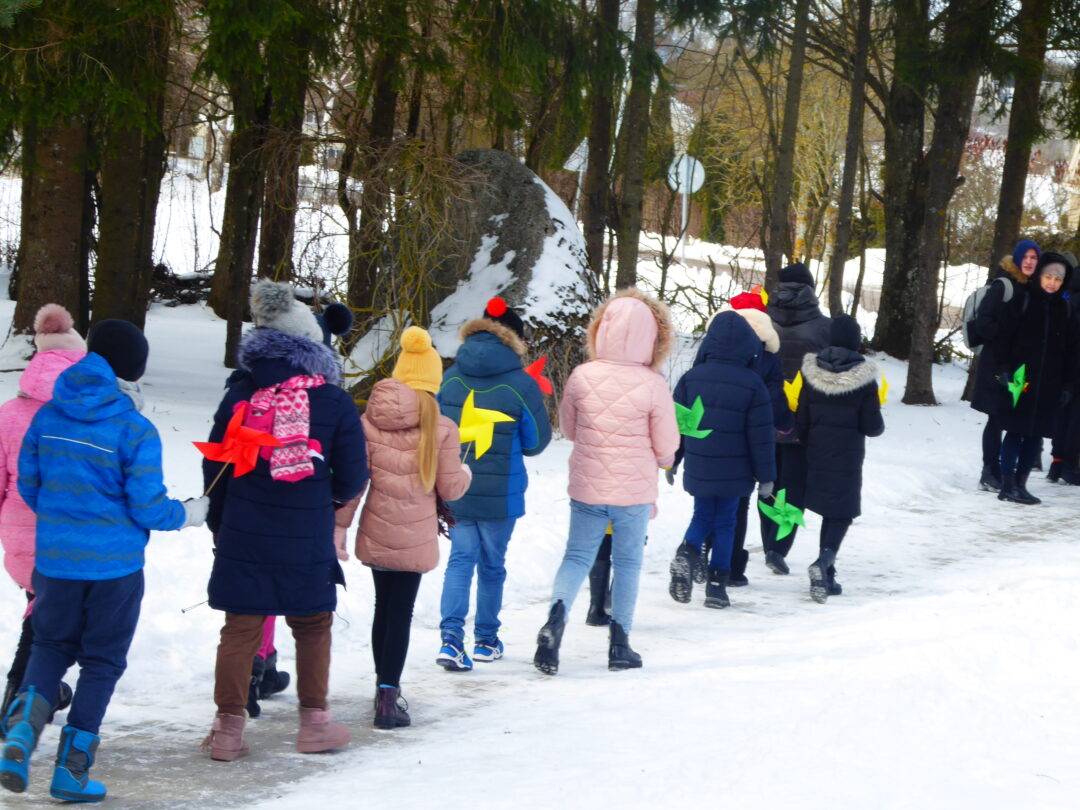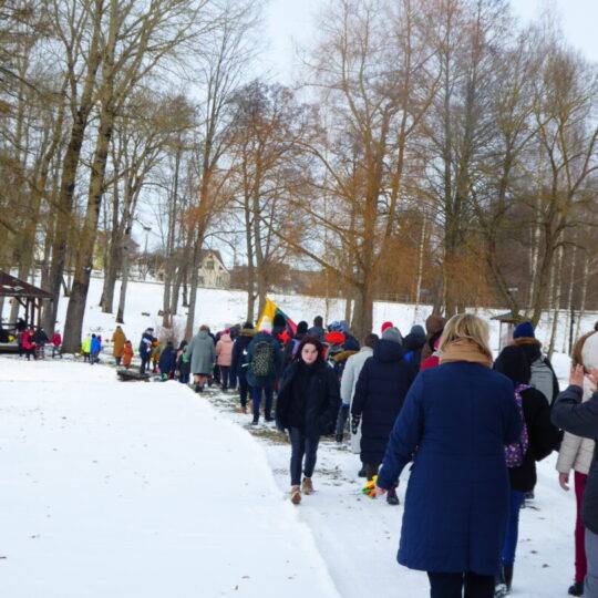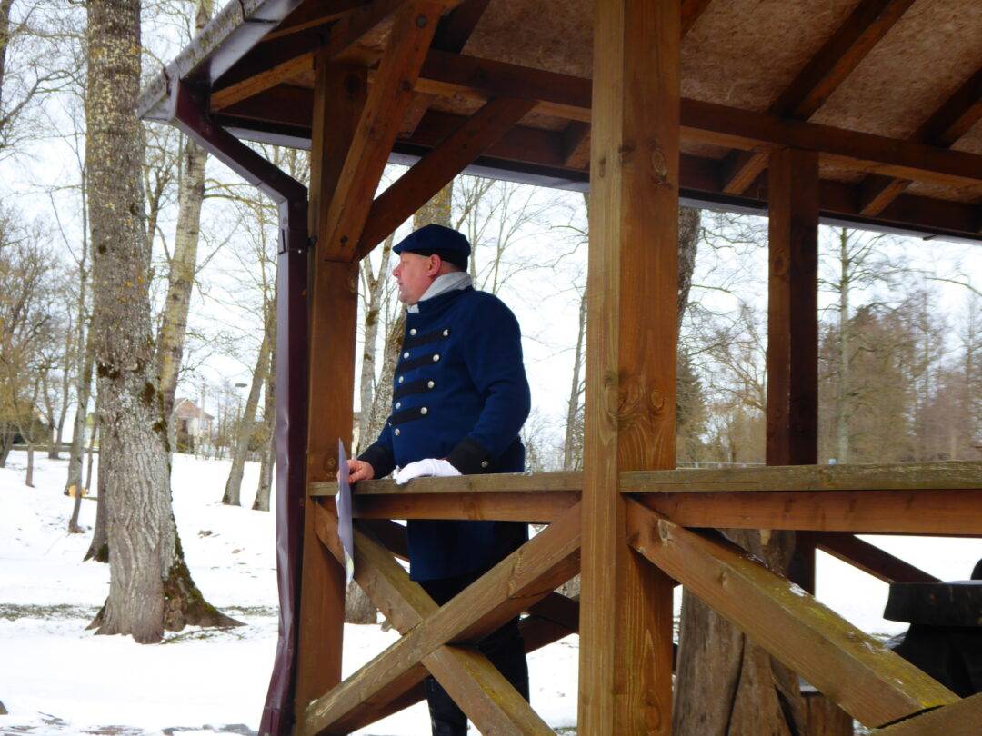 Prie paminklinio akmens laukė Laisvės kovų istorijos muziejaus darbuotojai, Obelių seniūnės pavaduotoja l. e. seniūnės pareigas Aldona Žėkienė, Obelių socialinių paslaugų namų kultūros padalinio atstovai, iš kurių aktyviausia – Violeta Kazlauskienė. Vaikai prieš kelionę buvo pasigaminę trispalvius malūnėlius. Jie tapo renginio akcentu. Muziejininkai buvo parengę staigmeną – inscenizaciją, kurioje „bajoras“ – istorikas Valius Kazlauskas – ne tik visus sveikino su Nepriklausomybės atkūrimo diena, bet ir tapo kelionės vedliu, pasakojančiu Obelių miestelio istoriją. Telefonu susisiekta su kunigaikščių Giedraičių palikuoniu, aktoriumi Rimantu Giedraičiu. Jis perdavė šilčiausius linkėjimus Kovo 11-osios proga.