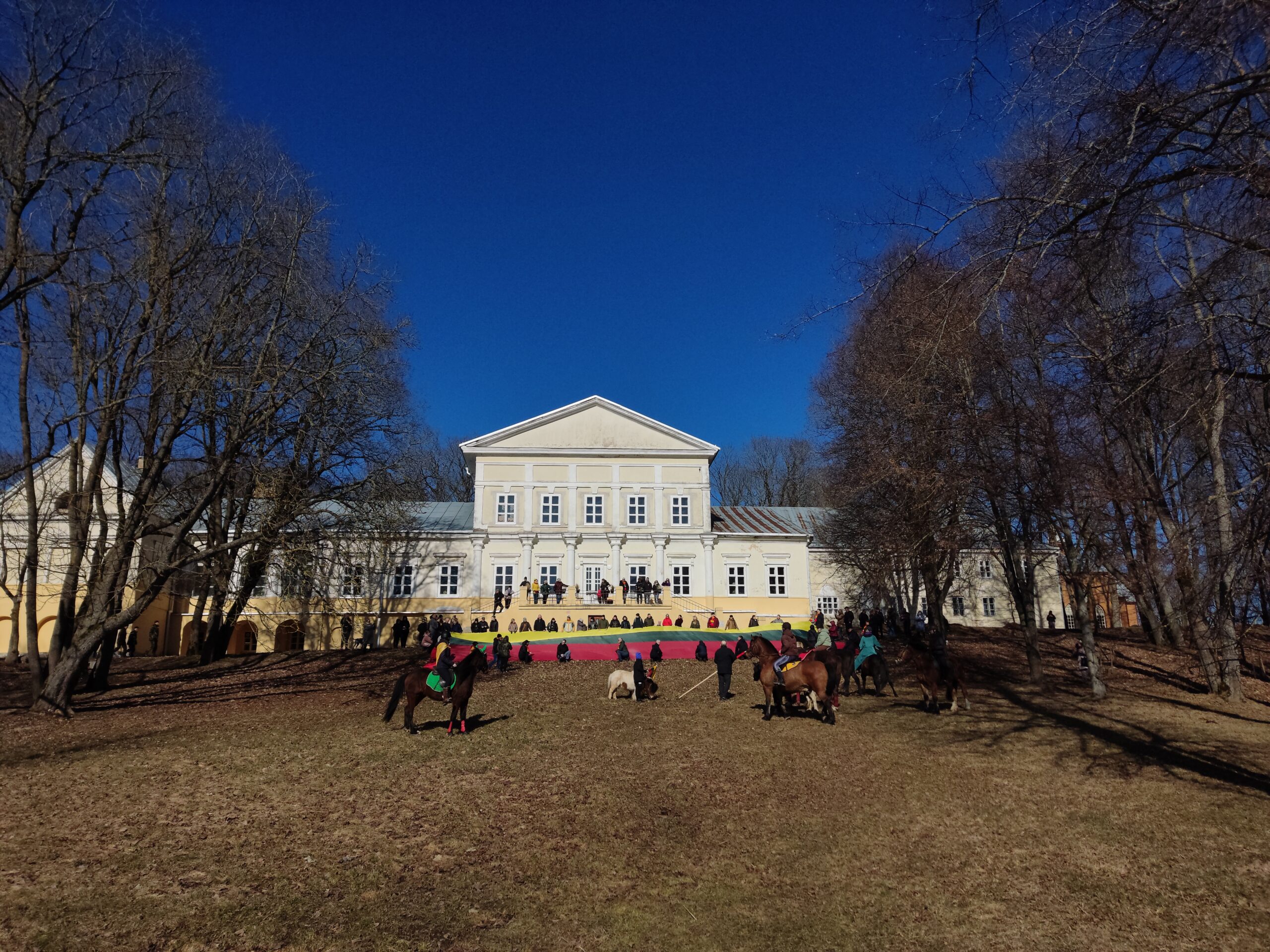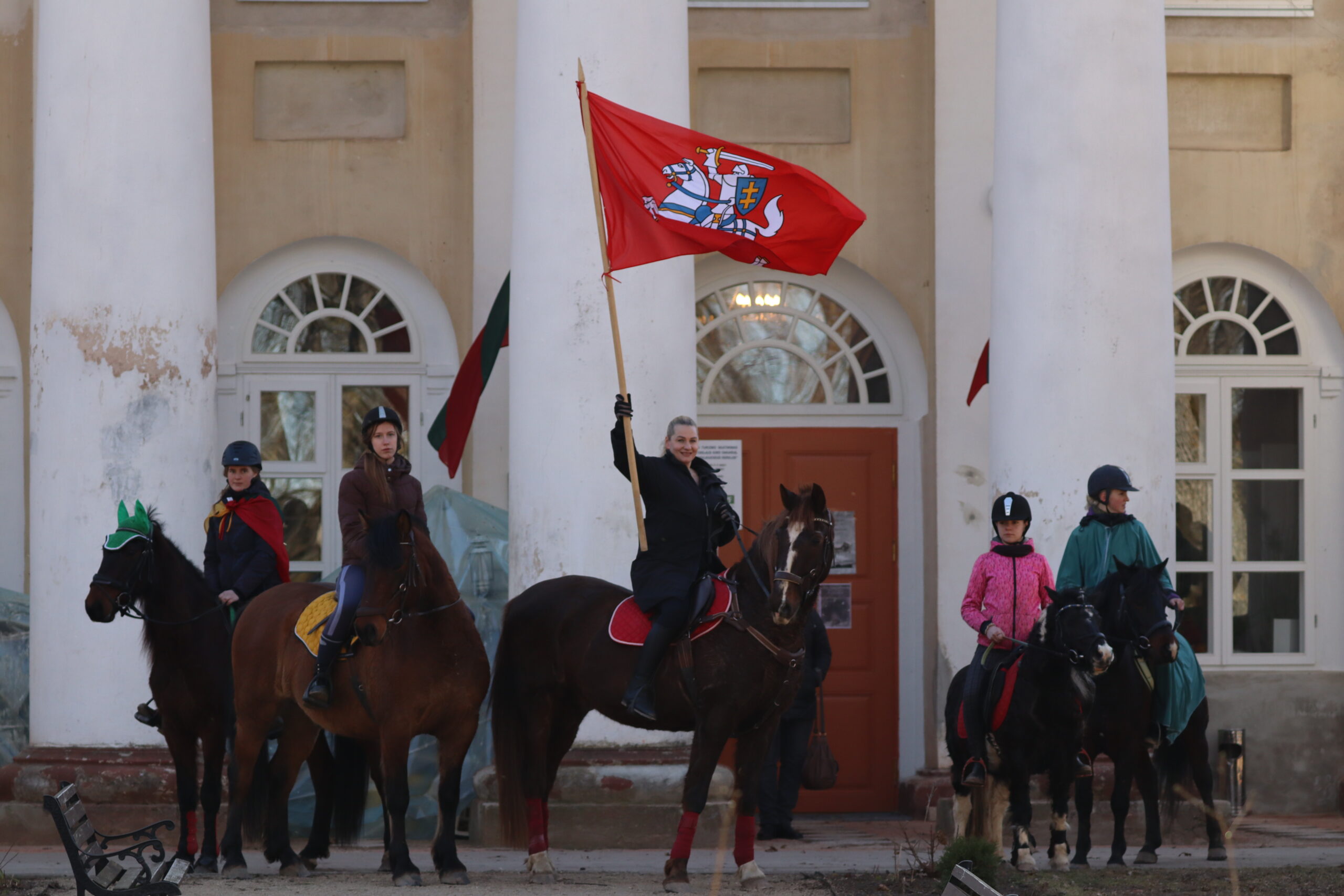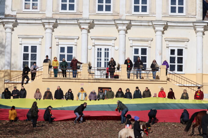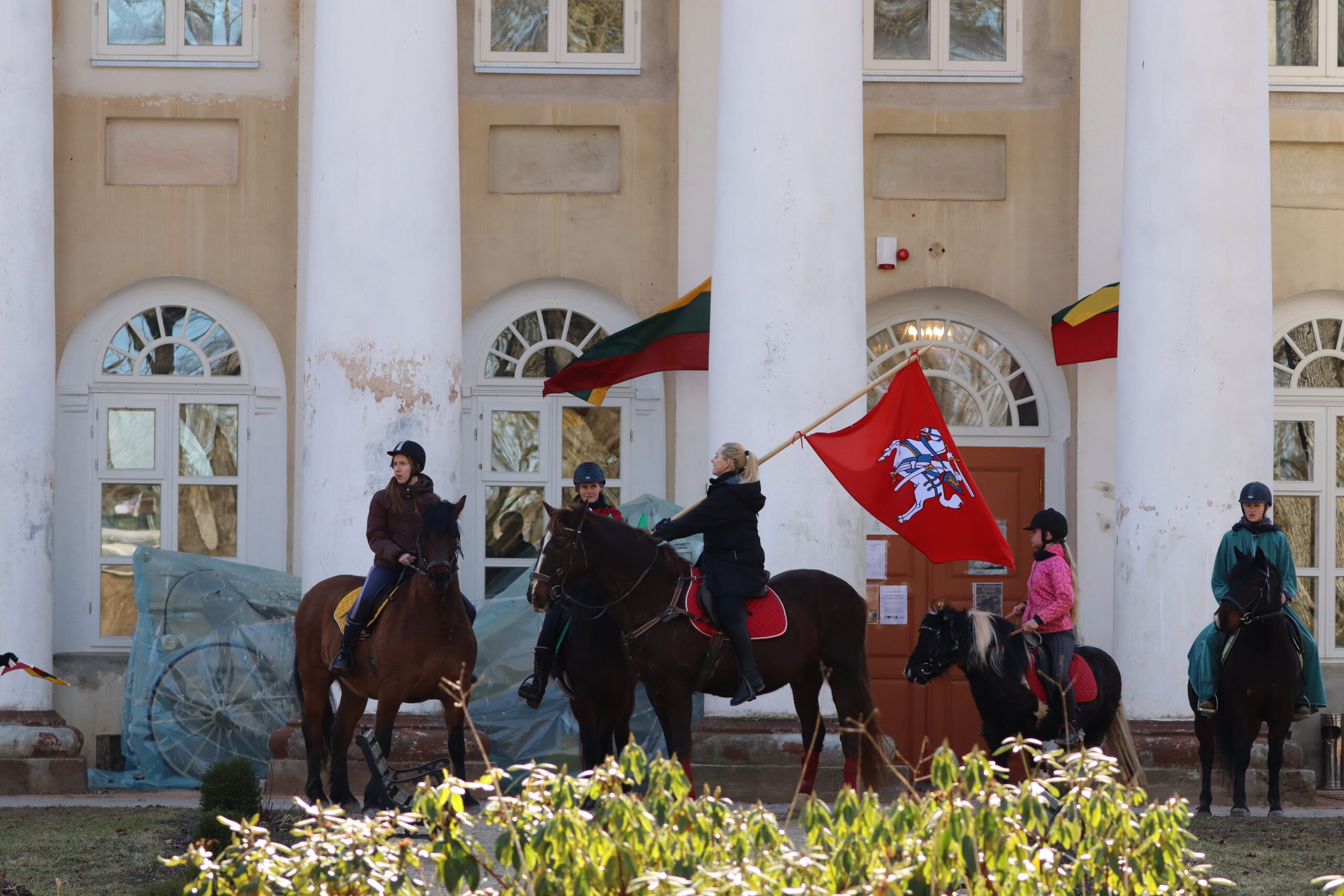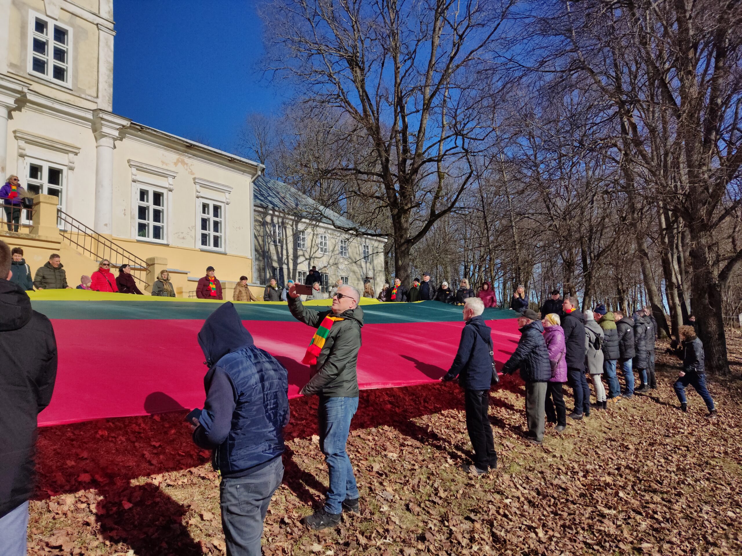 Žvelgiant į Dviragio ežerą, prie klasicistinių dvaro rūmų iškleista didžiulė trispalvė, sugiedota „Tautiška giesmė“.