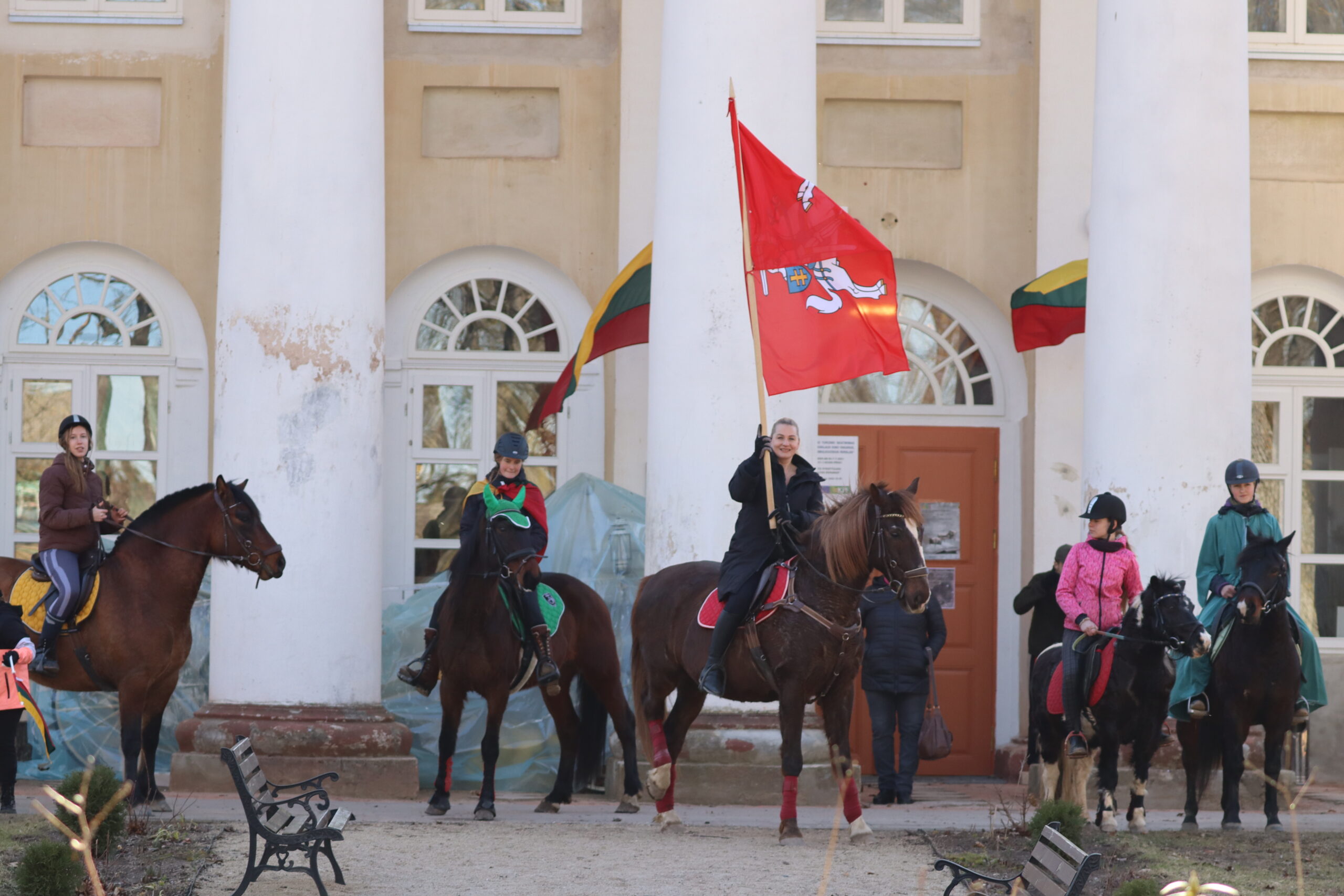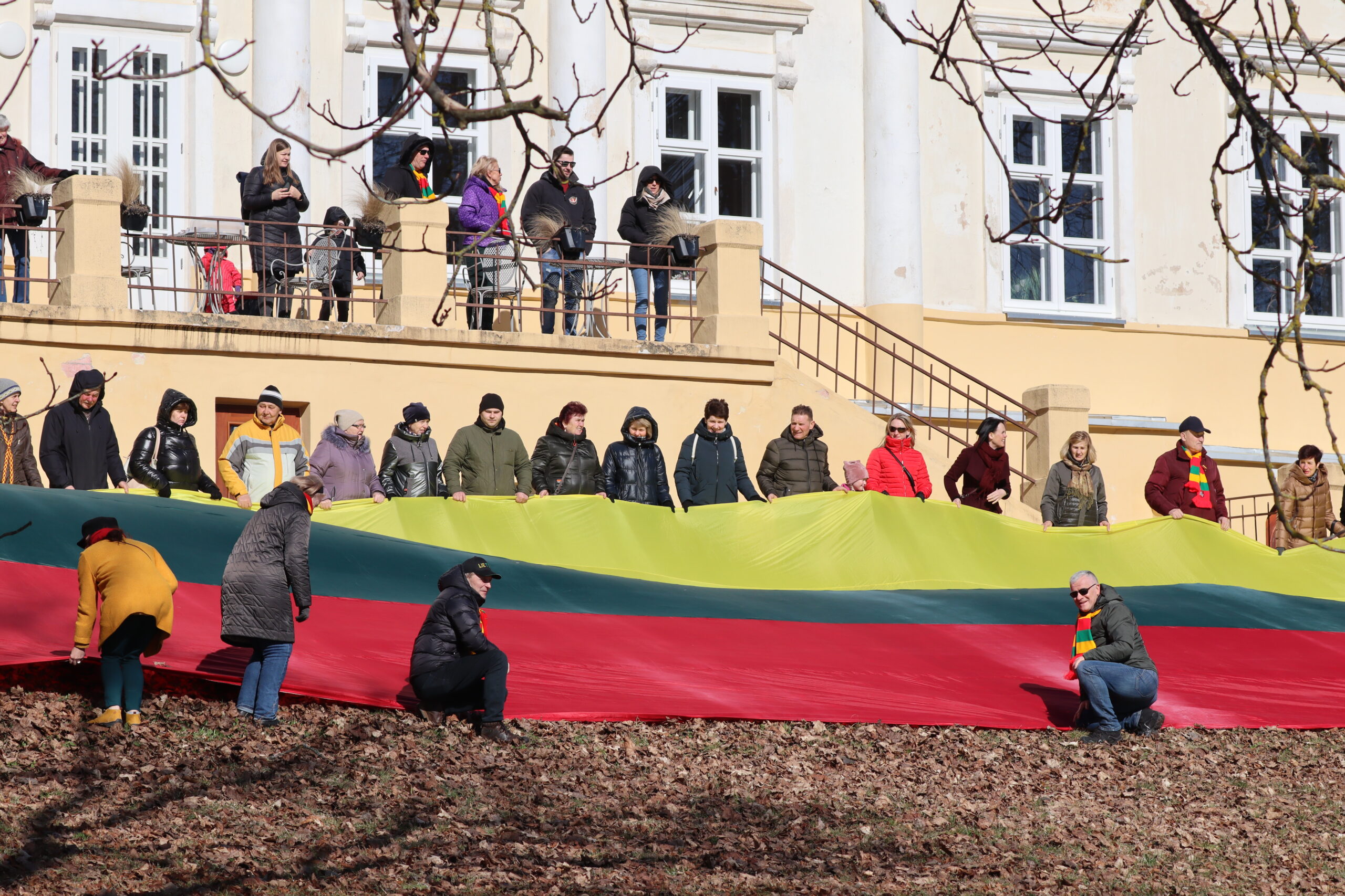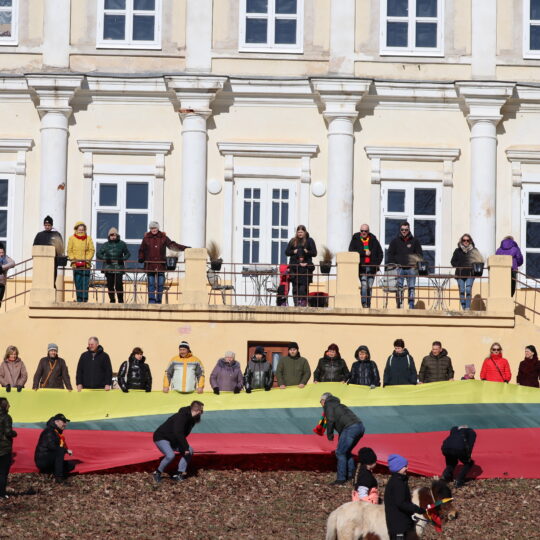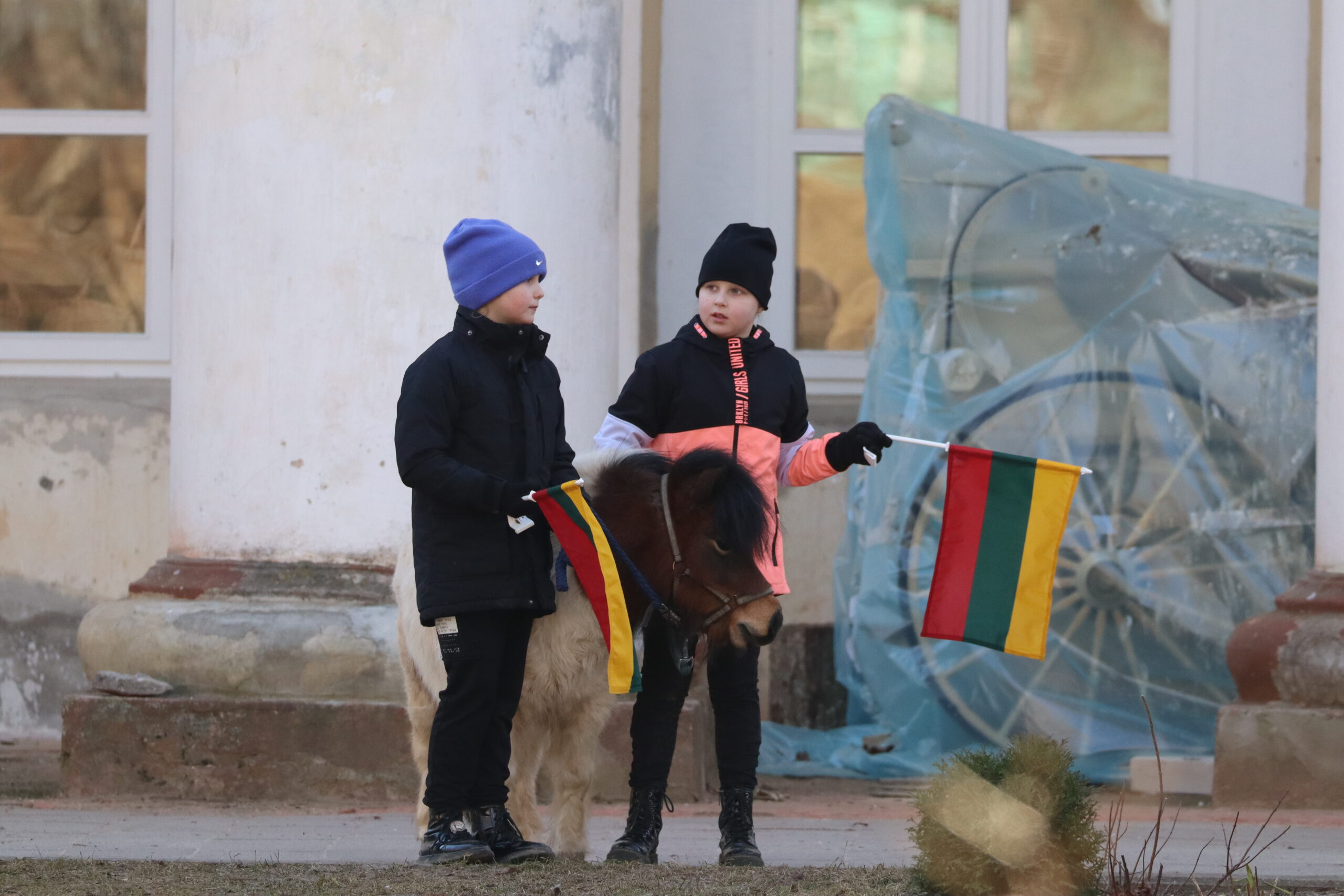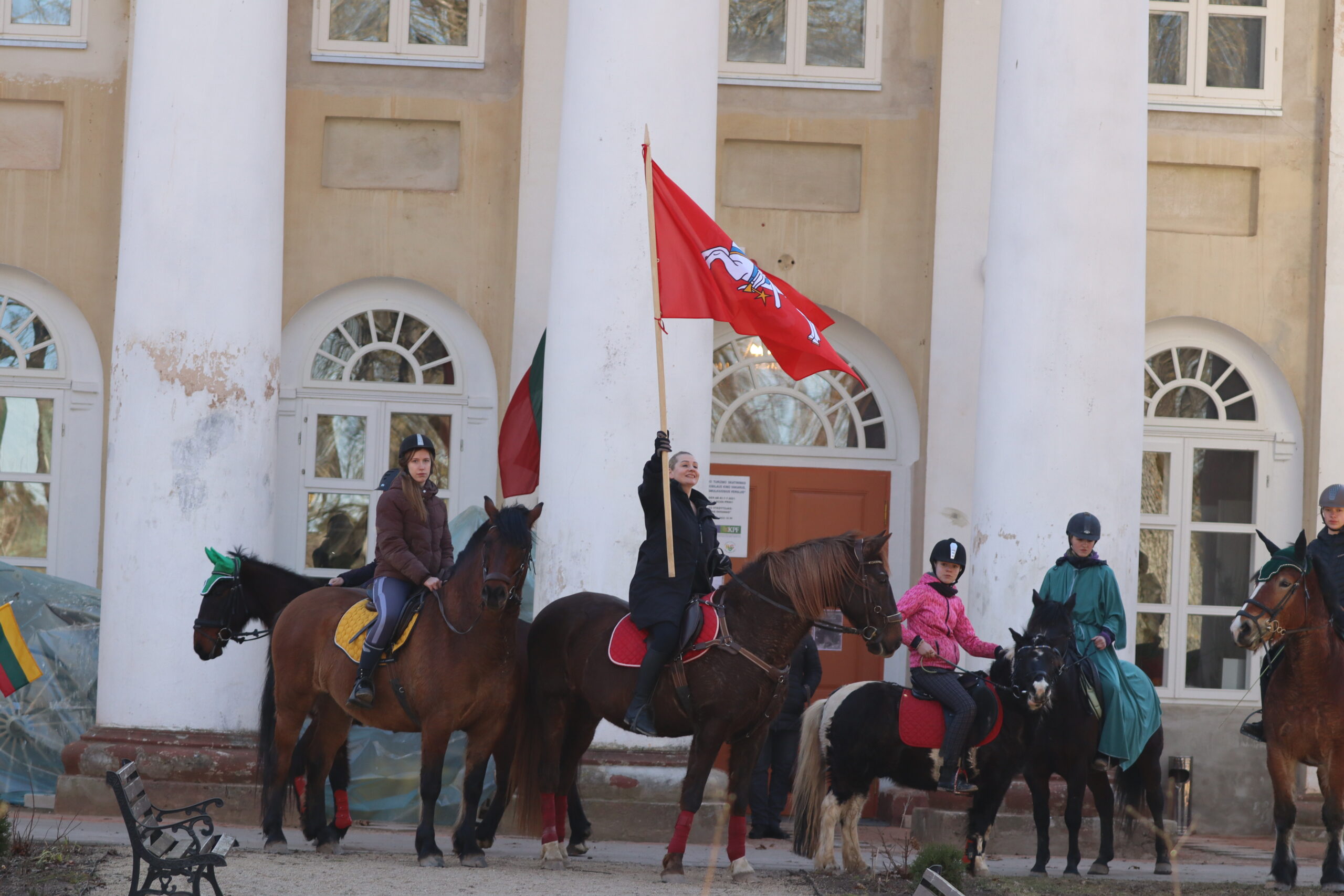 Žvelgiant į Dviragio ežerą, prie klasicistinių dvaro rūmų iškleista didžiulė trispalvė, sugiedota „Tautiška giesmė“.