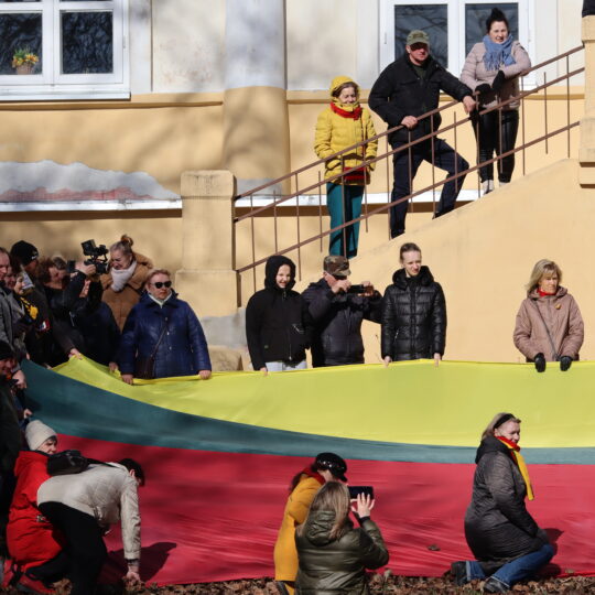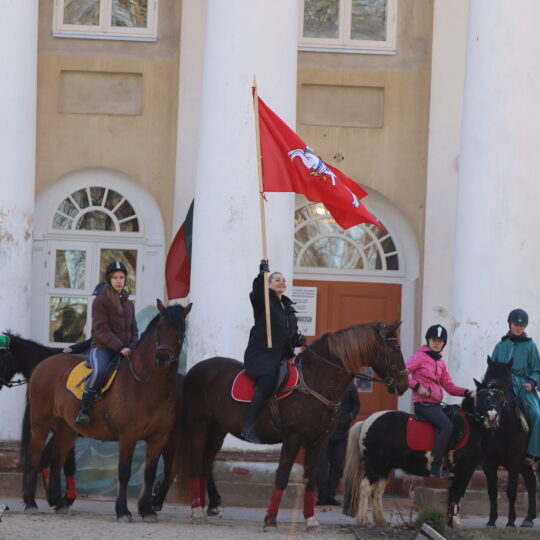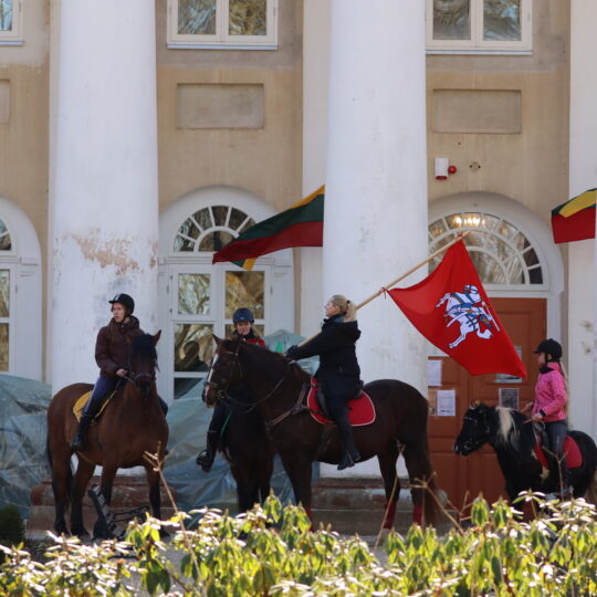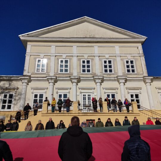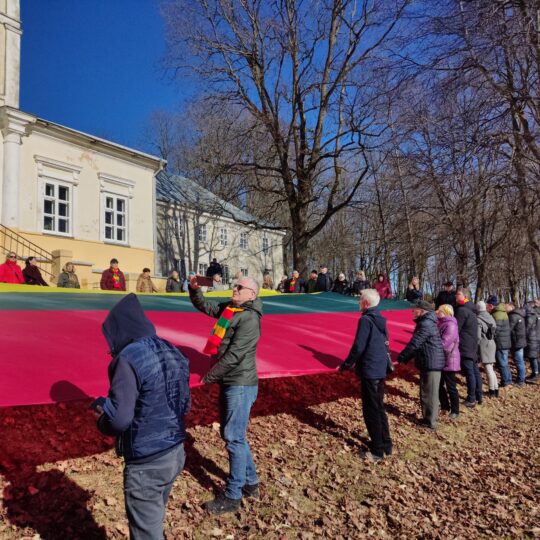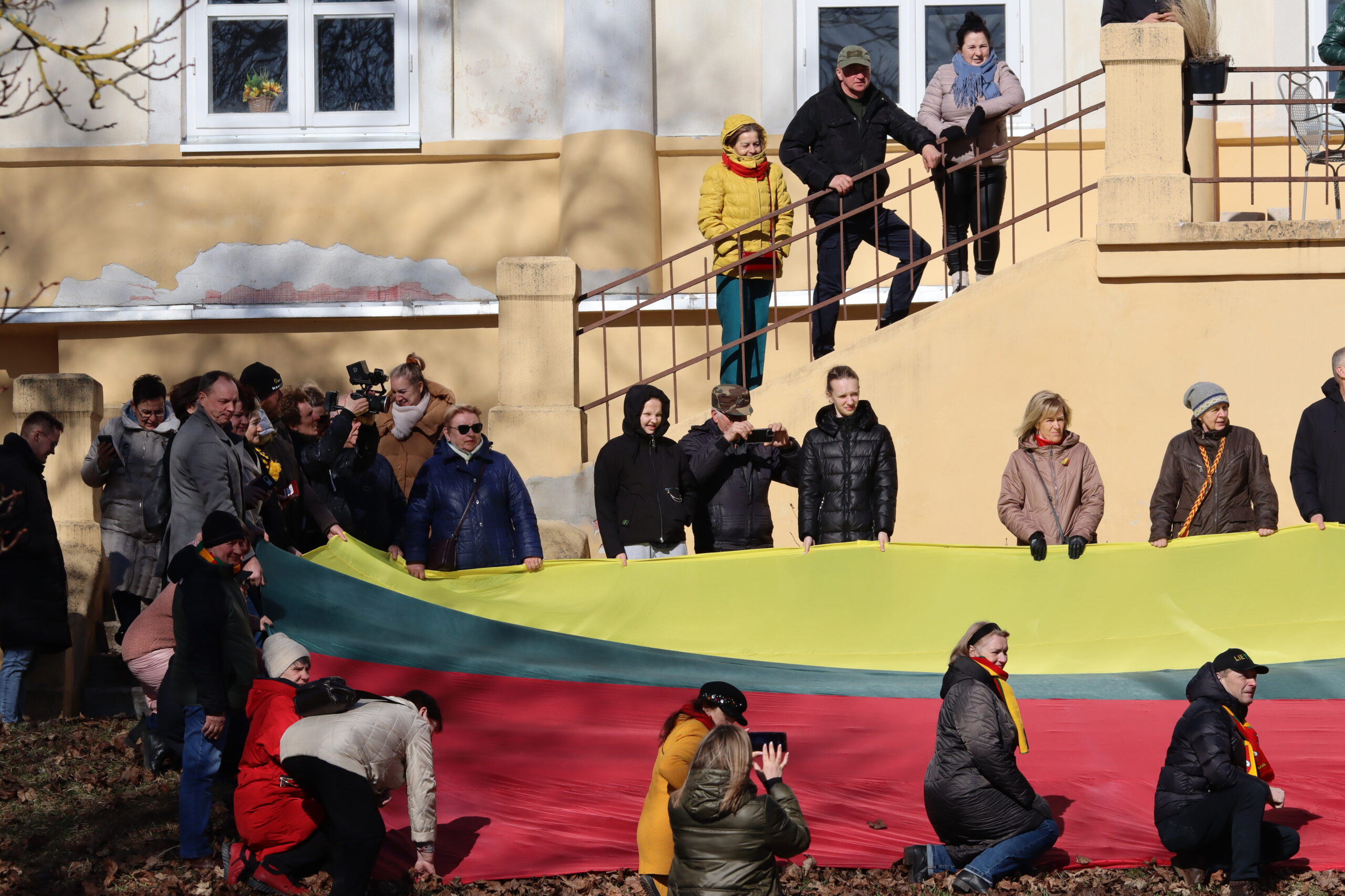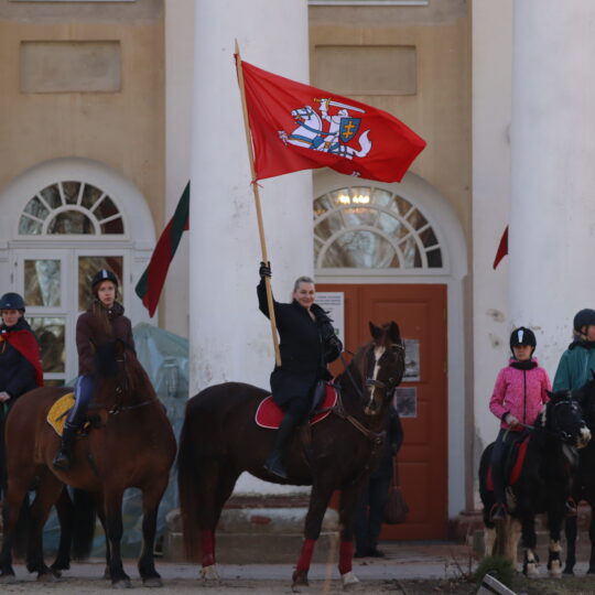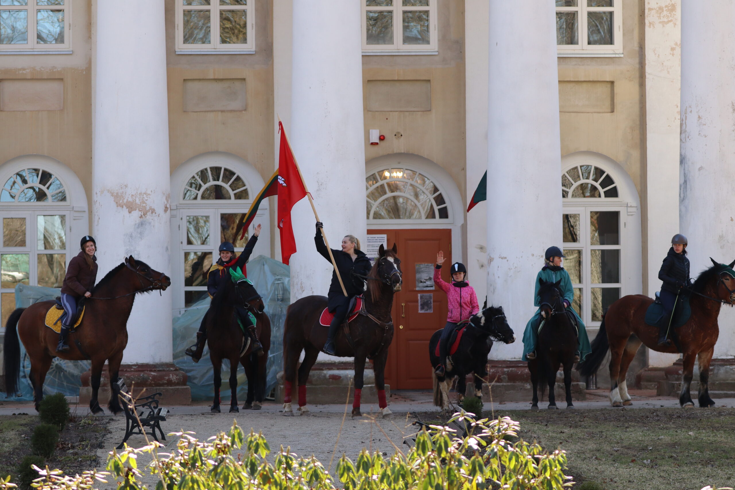 Žvelgiant į Dviragio ežerą, prie klasicistinių dvaro rūmų iškleista didžiulė trispalvė, sugiedota „Tautiška giesmė“.