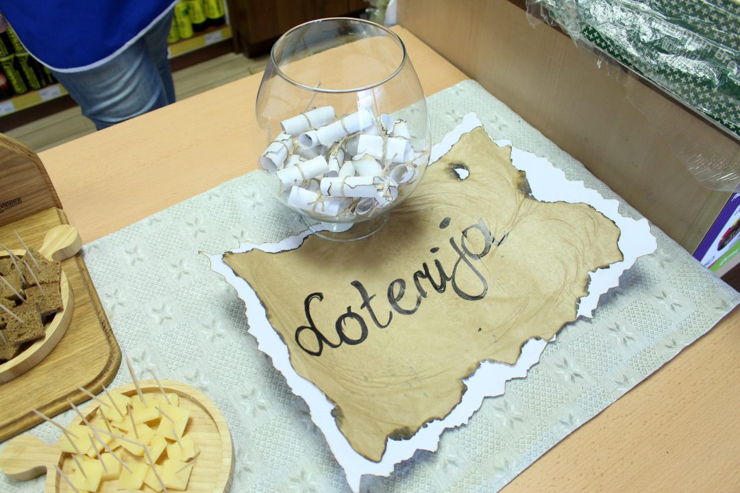 Parduotuvės administracija savo lankytojus pradžiugino didžiuliu tortu, loterija ir kitomis maloniomis staigmenomis.