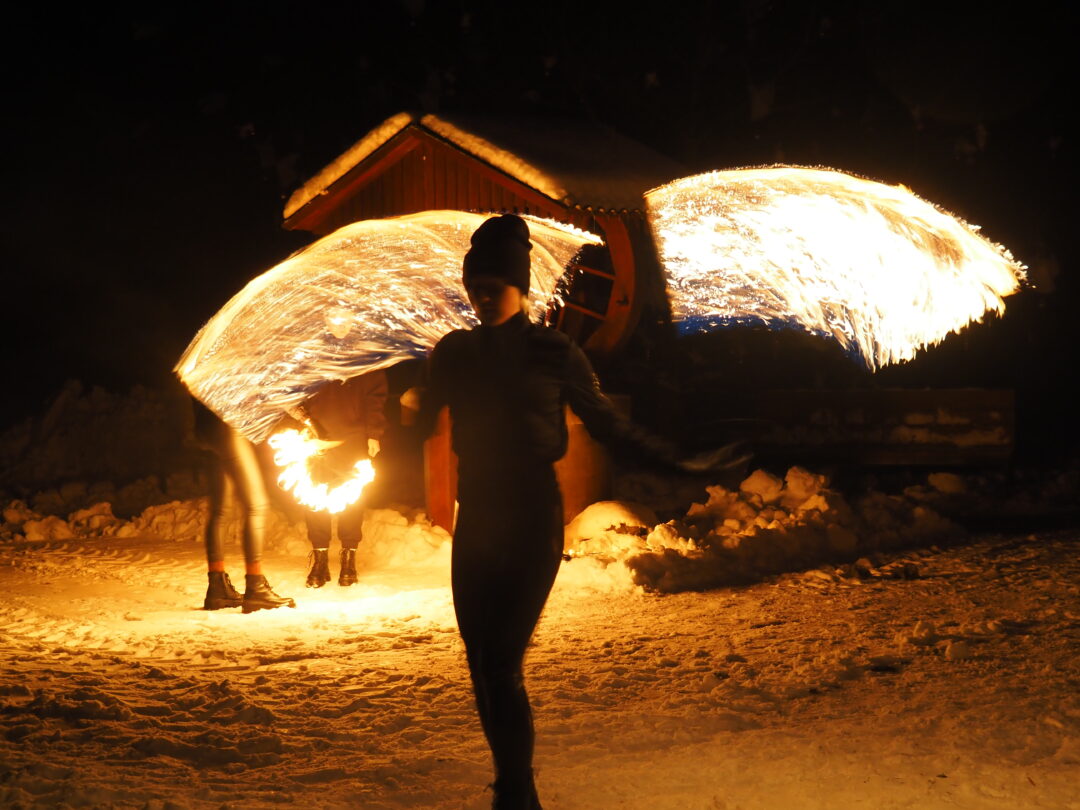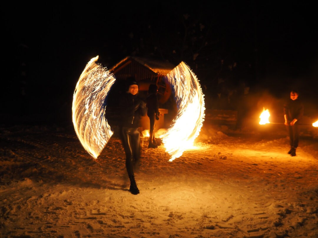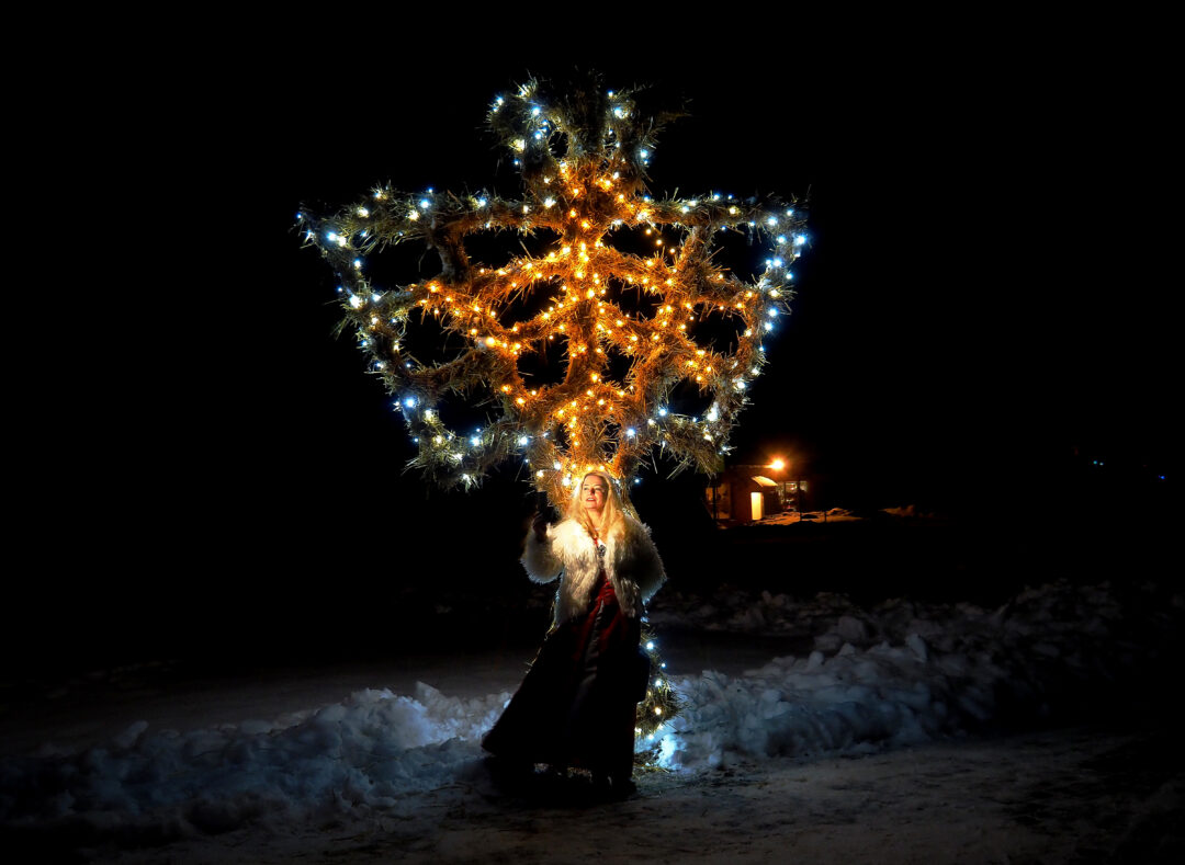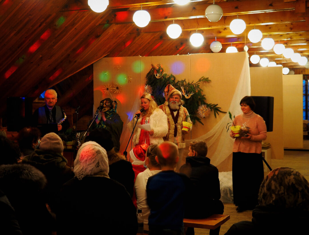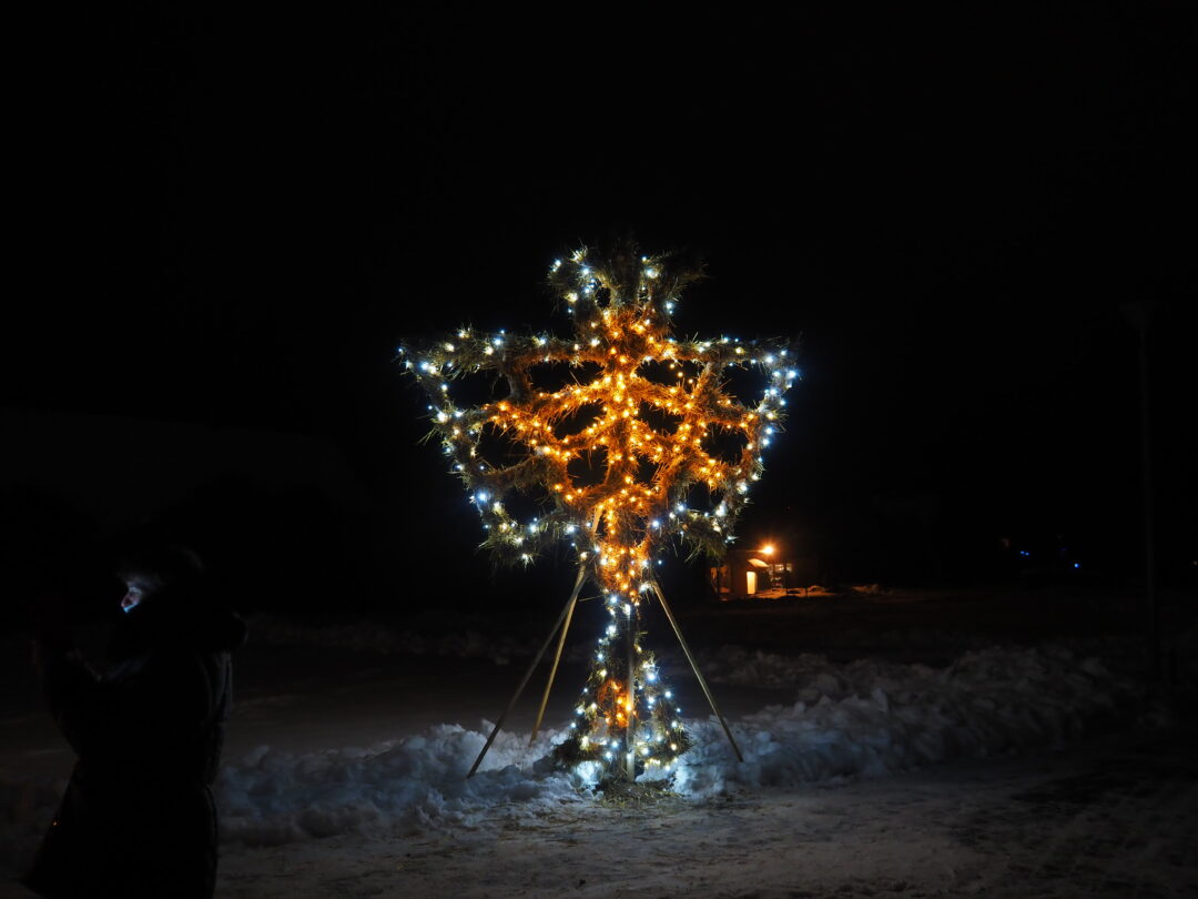 Tačiau, pasak kultūros darbuotojos Vitos Mačiulienės, Kalėdos – stebuklų metas, tad elektros generatorių operatyviai atgabeno „Lašų“ ŽŪB. Deja, jam turėta nedaug benzino, o papildyti iš kuro kolonėlės nebuvo kaip, nes Lašų kaime irgi nutrūko elektros tiekimas. Benzino atsargas nešė gyventojai, todėl pavyko apšviesti Kriaunų muziejuje vykstantį susibūrimą – jubiliatų sveikinimą ir kitas linksmybes. Organizatorius klaidino tai atnaujinamas, tai vėl nutraukiamas elektros tiekimas iš aukštos įtampos linijų, todėl generatorių tekdavo tai įjungti, tai išjungti. Visgi per ugnies fakyrų pasirodymą lauke išseko ir jo kuras. Fakyrai programą baigė be muzikos, tačiau entuziastingai palaikomi žiūrovų. Kol žmonės būriavosi, elektra neatsirado, todėl eglė liko neįžiebta, Kriaunų centrą nušvietė tik fejerverkai. Eglė nušvito išsiskirsčius kone visiems žiūrovams.