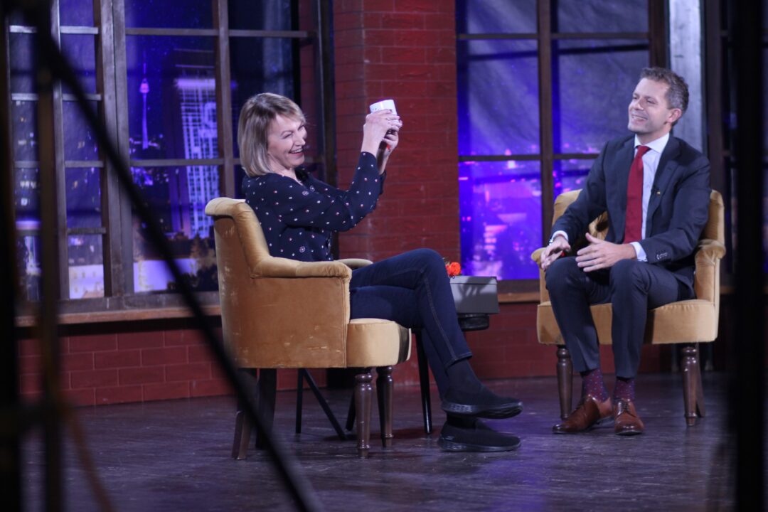 Filmavimo pradžioje A. Tapinas šmaikščiai aptarė naujausius įvykius mūsų jaunoje demokratijoje, o vėliau pakalbino legendinės grupės „Rondo“ lyderį Aleksandrą Ivanauską-Farą ir „Tele Bim-Bam“ kūrėją ir vedėją, vaikų dainų kompozitorę ir atlikėją Neringą Čereškevičienę. Tris valandas vykęs filmavimas neprailgo, o A. Tapinas rokiškėnus patikino su filmavimo grupe grįšiantis į Rokiškį rudenį – po Seimo rinkimų.