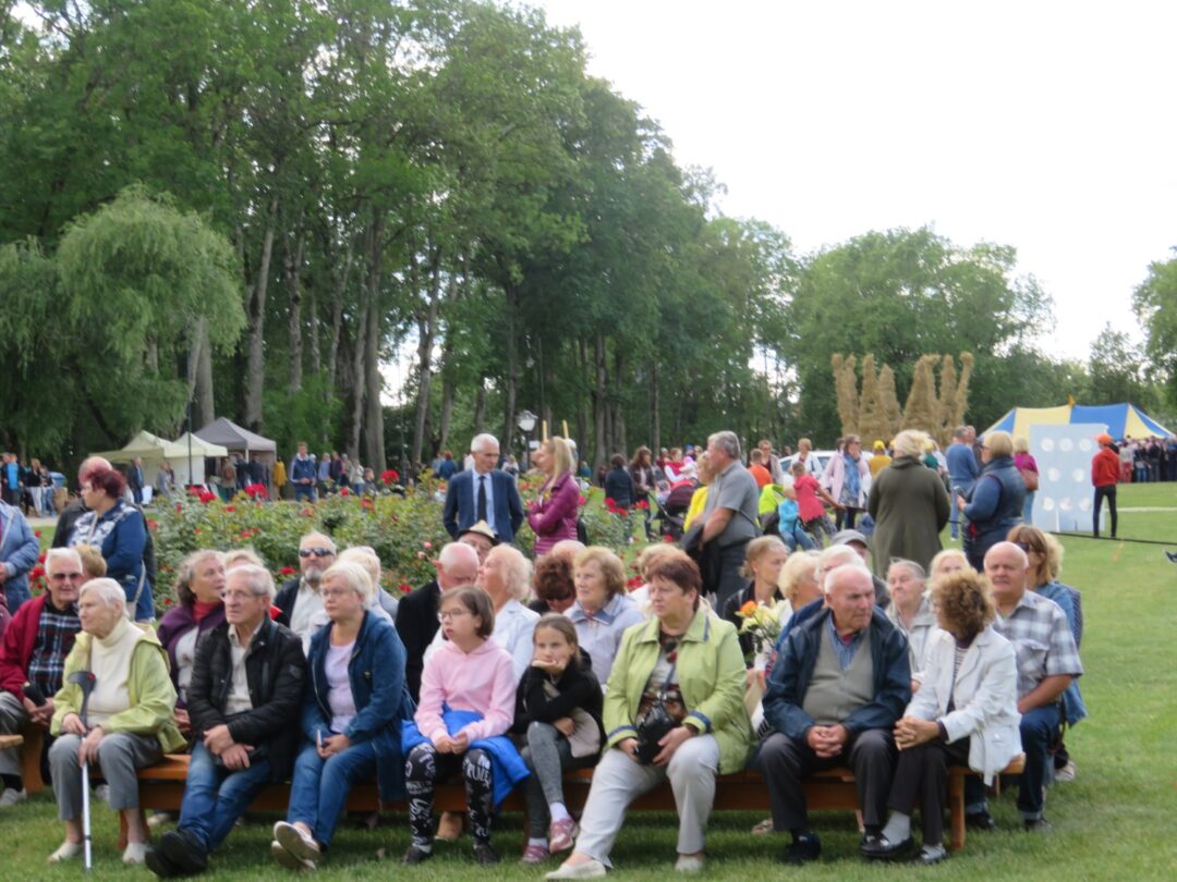 Priešais centrinį įėjimą į dvarą, šalia didžiosios scenos, stovėjo karaliui Mindaugui paruoštas sostas. „Kurkite savo šalies ateitį stiprūs ir laimingi“, – palinkėjo personažą įkūnijęs liaudies teatro aktorius Ramūnas Traškinas. Iš jo šventės vedimą perėmė jaunoji karta – Žiedė Kirstukaitė ir Povilas Čaikauskas. Jie pradėjo nuo Rokiškio kraštą garsinančių žemdirbių pagerbimo ir apdovanojimų.