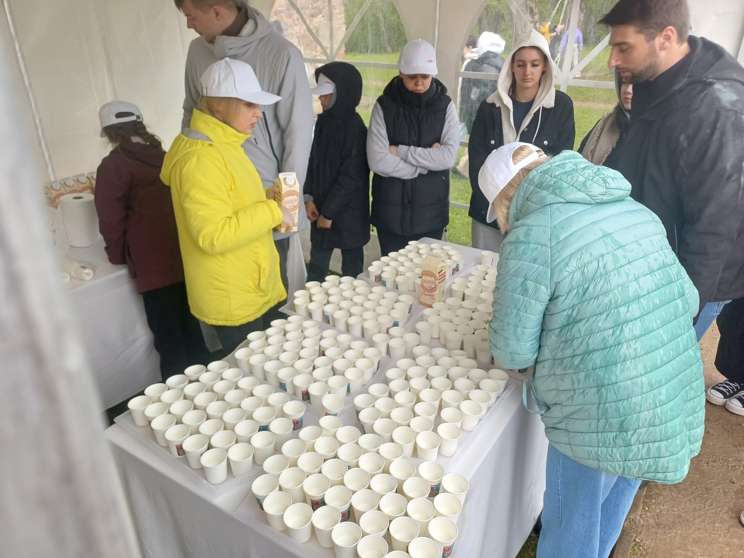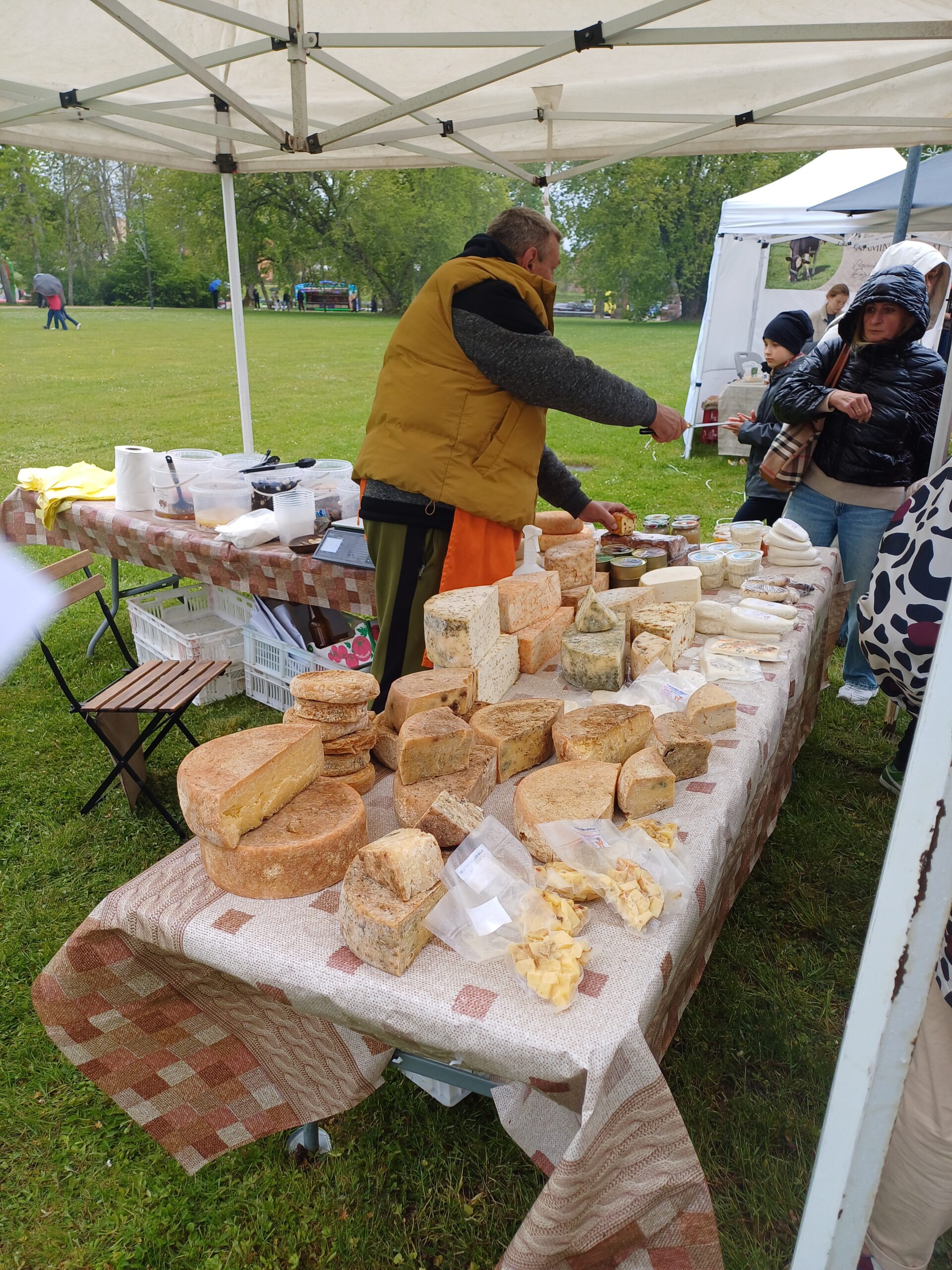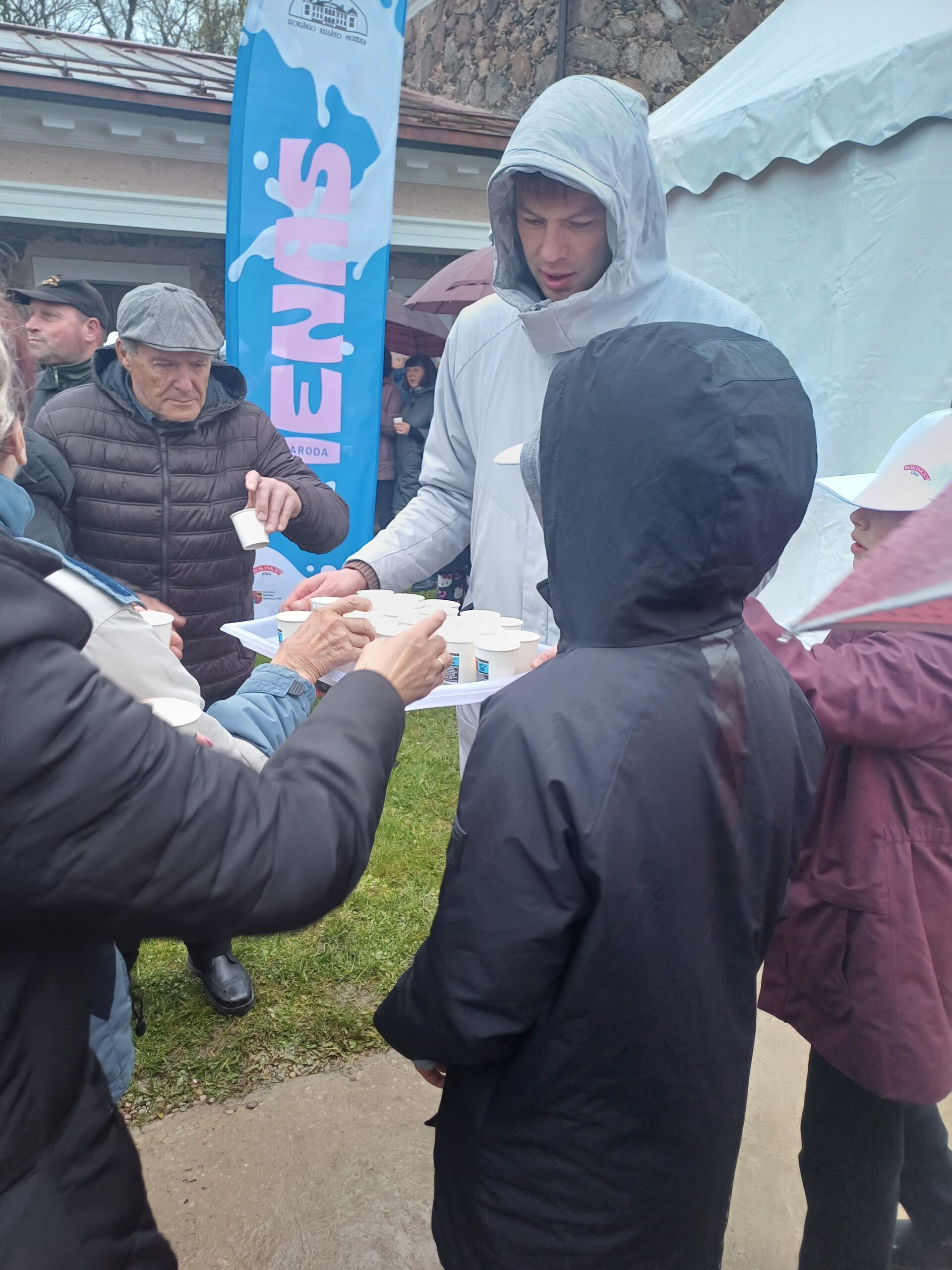 Popietę, kai renginys prasidėjo neišvengiama tokiai progai muge, žmonių nebuvo itin gausu, bet aplink prekybininkų palapines jų pamažu daugėjo. Mugė buvo gal šiek tiek didesnė nei įprasta muziejui ir joje galėjai rasti visko – nuo žaislų ir riestainių iki čia pat rūkomos žuvies bei, kaip pieninės jubiliejui ir priklauso, kiek gausesnio naminių sūrių asortimento. Tarp prekybininkų gražiai baltavo ir palapinės, kuriose turėjo būti pilstomas pienas degustavimo rekordui.