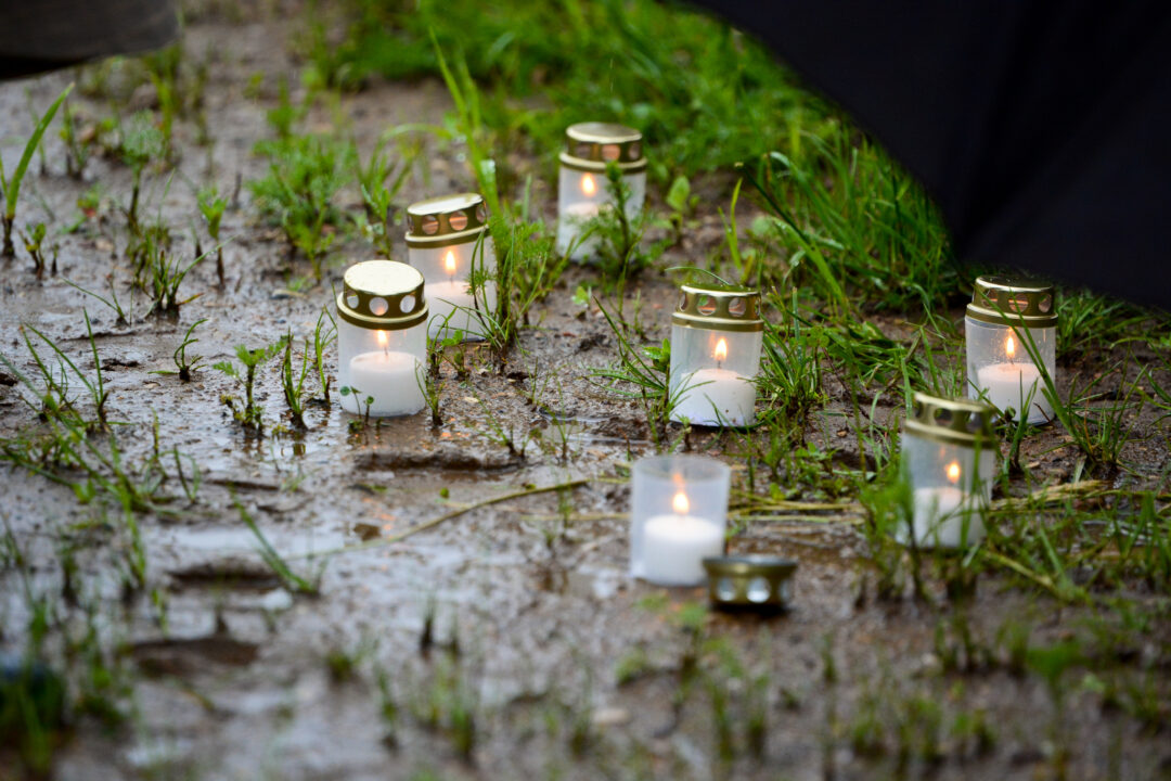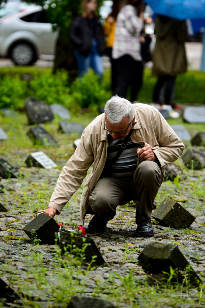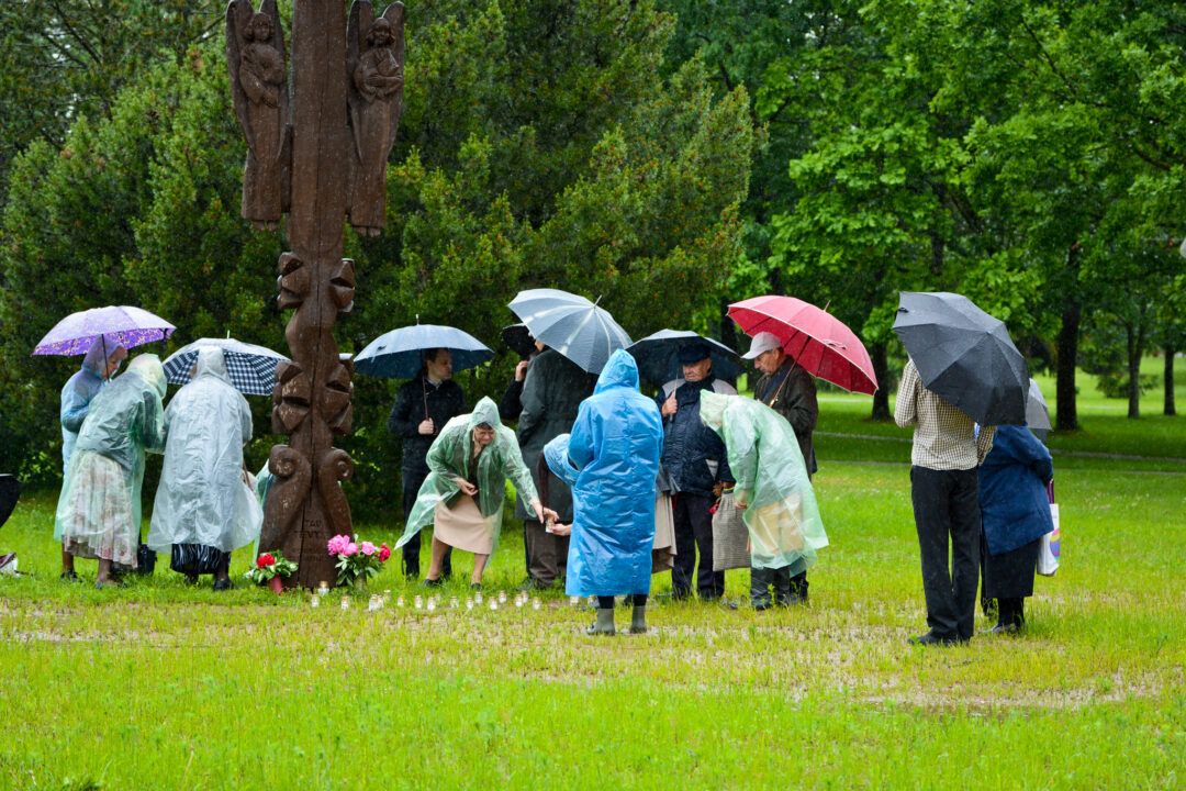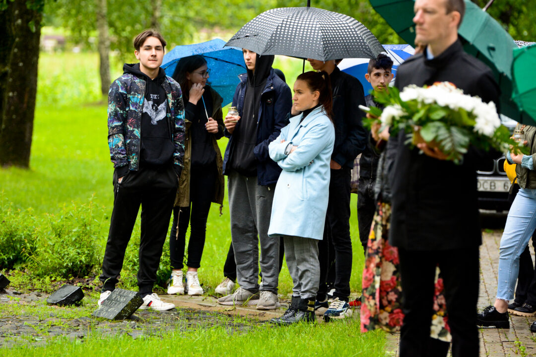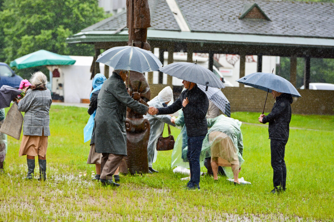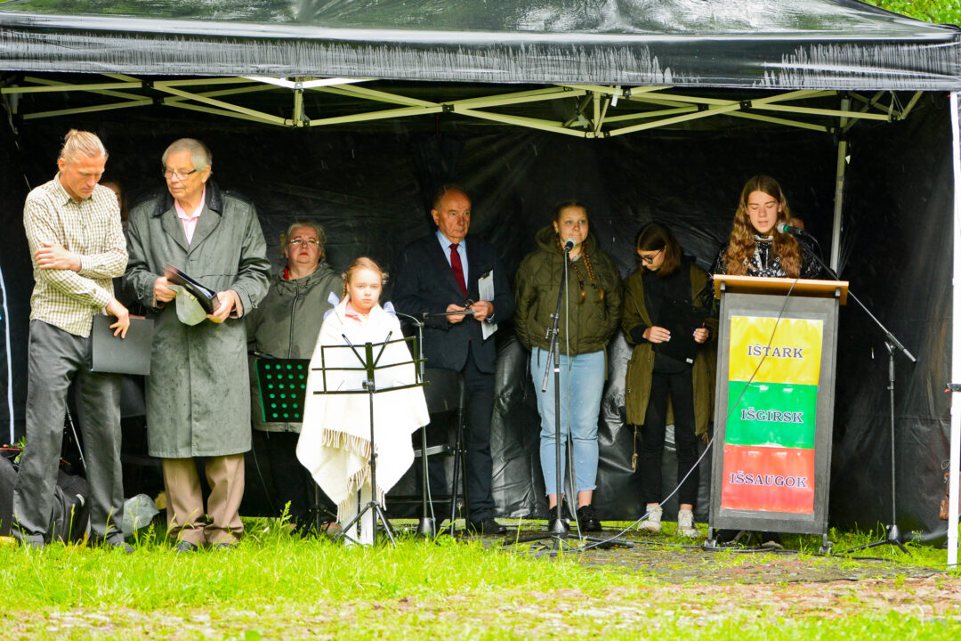 Rytas prasidėjo pilant lietui, tačiau būrelis žmonių nepabūgo ir susitiko prie L. Šepkos parke esančio Tremtinių kryžiaus. Čia uždegė simbolines žvakutes.