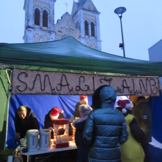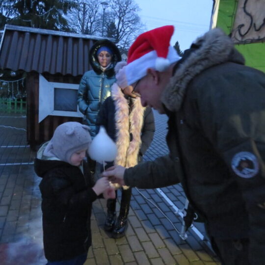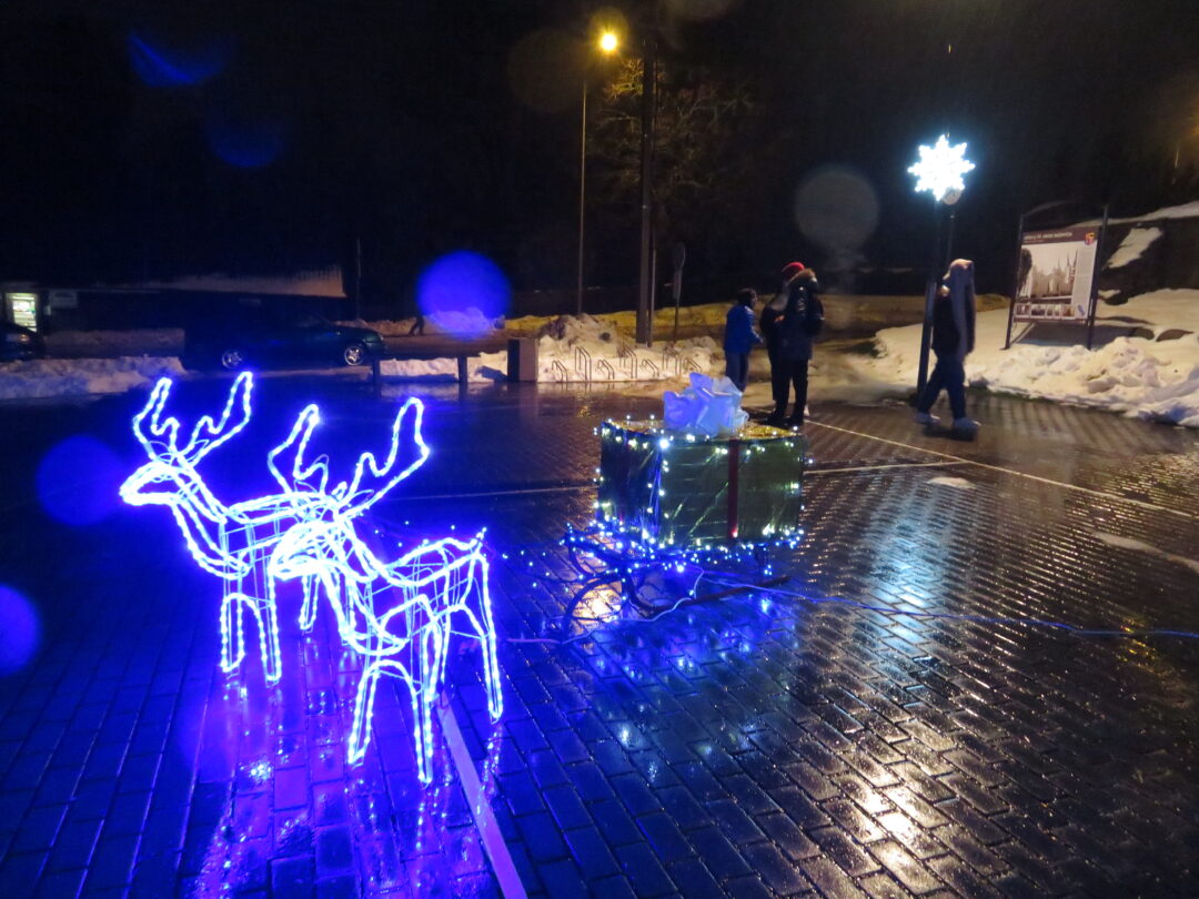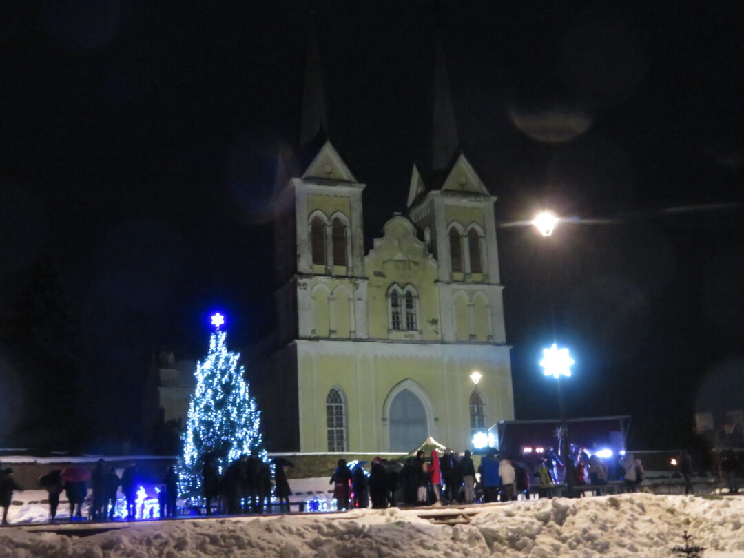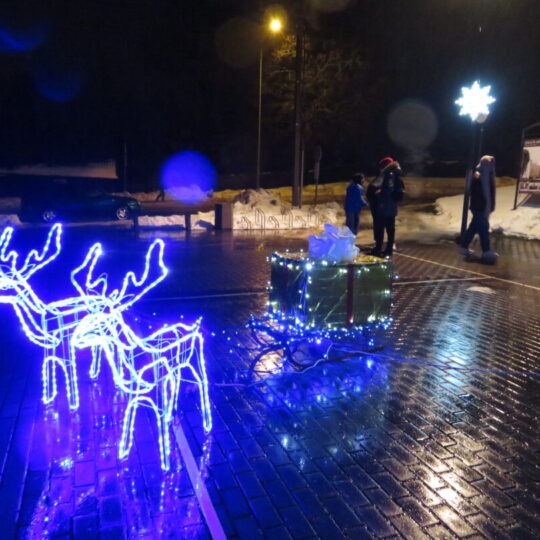 Prasmingomis dainomis kalėdinę nuotaiką kūrė solistės Sandra Menšikovaitė ir Katerina Nikitina, žaismingai vaidino ir šoko Obelių socialinių paslaugų namų kultūros padalinio teatro „Šypsniukai“ aktorės, dangų nušvietė fejerverkai. Kalėdų senelis pasirodė esąs labai dosnus – visus apdalijo saldainiais. Kam to nepakako, galėjo rikiuotis į eilę prie saldumynų ir karštų gėrimų. „Svarbiausia, viskas nemokamai. O tai labai svarbu lietuviams“, – šmaikštavo renginio vedėja ir kvietė prie „Smaližainės“.