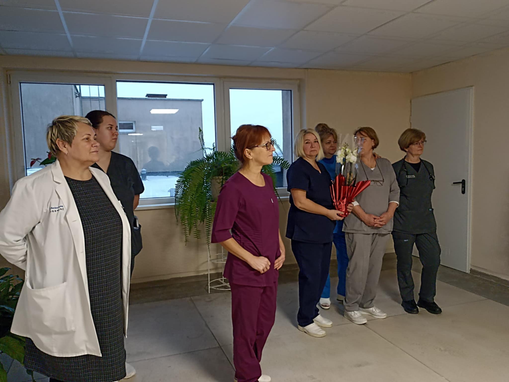 Sveikindami Vidaus ligų profilio skyriaus personalą kolegos iš kitų ligoninės skyrių linkėjo gerų pacientų, darnių darbų ir kokia sunki darbo diena bebūtų – neprarasti šypsenos.