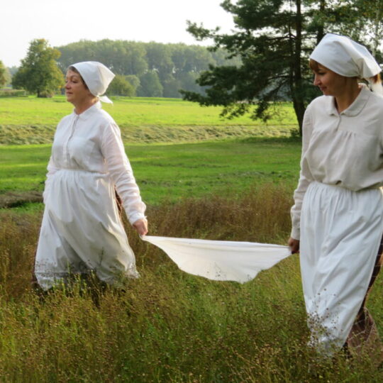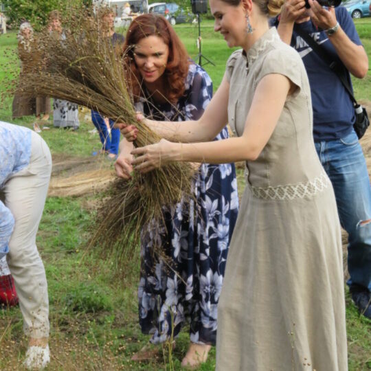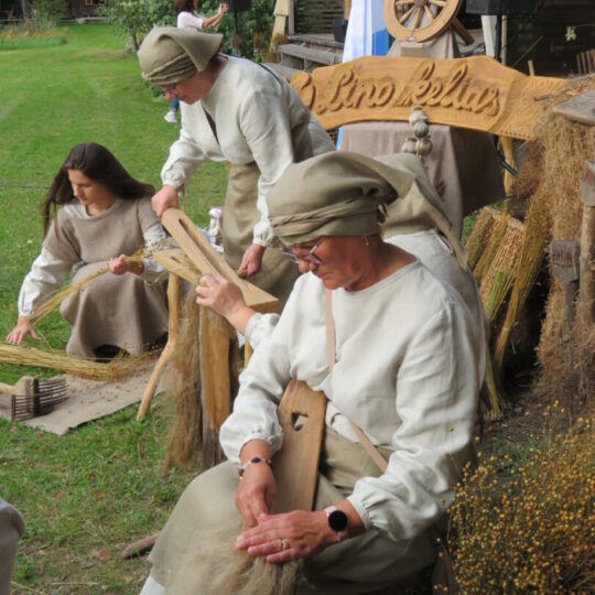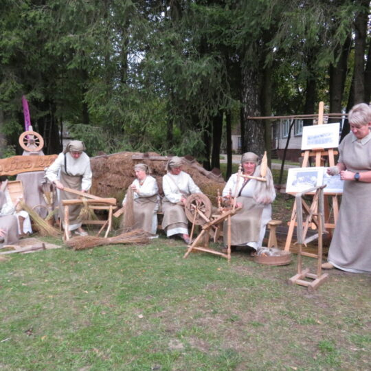 Jau nurauto lino „kančios“ atgijo edukacinėje programoje „Lino kelias“, kurią demonstravo panemunėlietės, vadovaujamos Panemunėlio mokyklos-UDC kultūrinės veiklos organizatorės Audronės Šakalienės.