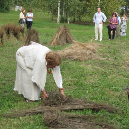 Kasmet ji organizuojama Irenos ir Romualdo Kaminskų sodyboje, Panemunėlio gelež. st. gyvenvietėje. Šiais metais susirinko kur kas mažiau žiūrovų, nei įprastai. Liko ištikimiausieji. Štai keletas moterų atvažiavo net iš Panevėžio, kartu atsiveždamos pažįstamą sesę vienuolę, kuri labai norėjo prisiminti, kaip ji jaunystėje raudavo linus. Viešnia ne tik žiūrėjo, bet ir kibo į darbą tiek, kiek leido jėgos.
