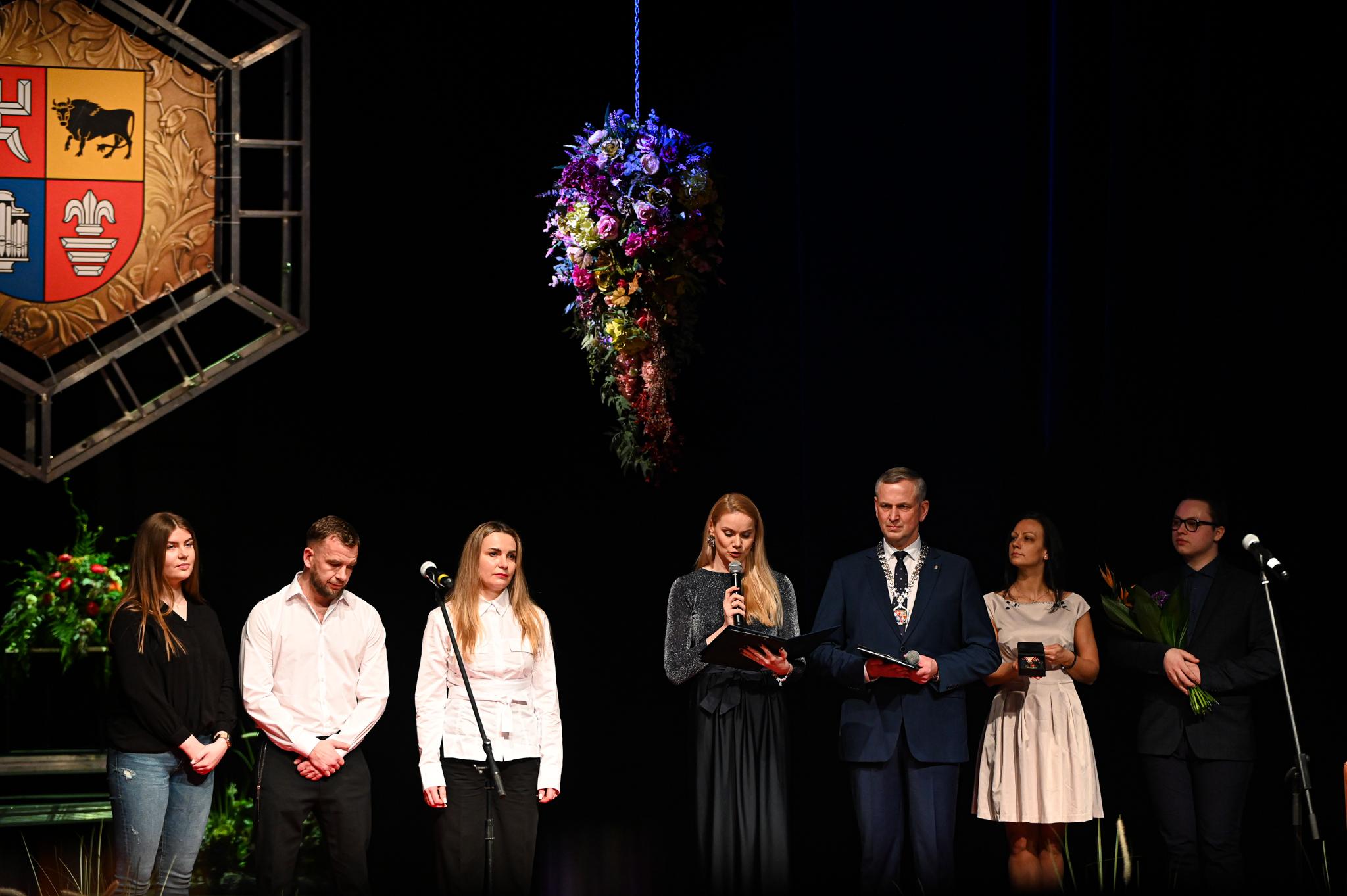 Taip pat meras įteikė 45 padėkos raštus mūsų krašto žmonėms už pilietines-patriotines iniciatyvas, bendruomeninę, kultūrinę veiklą, savanorystę, gerumo akcijas ir kitą bendram gėriui skirtą veiklą, o visą vakarą renginio dalyvius džiugino jaunieji Rokiškio talentai.