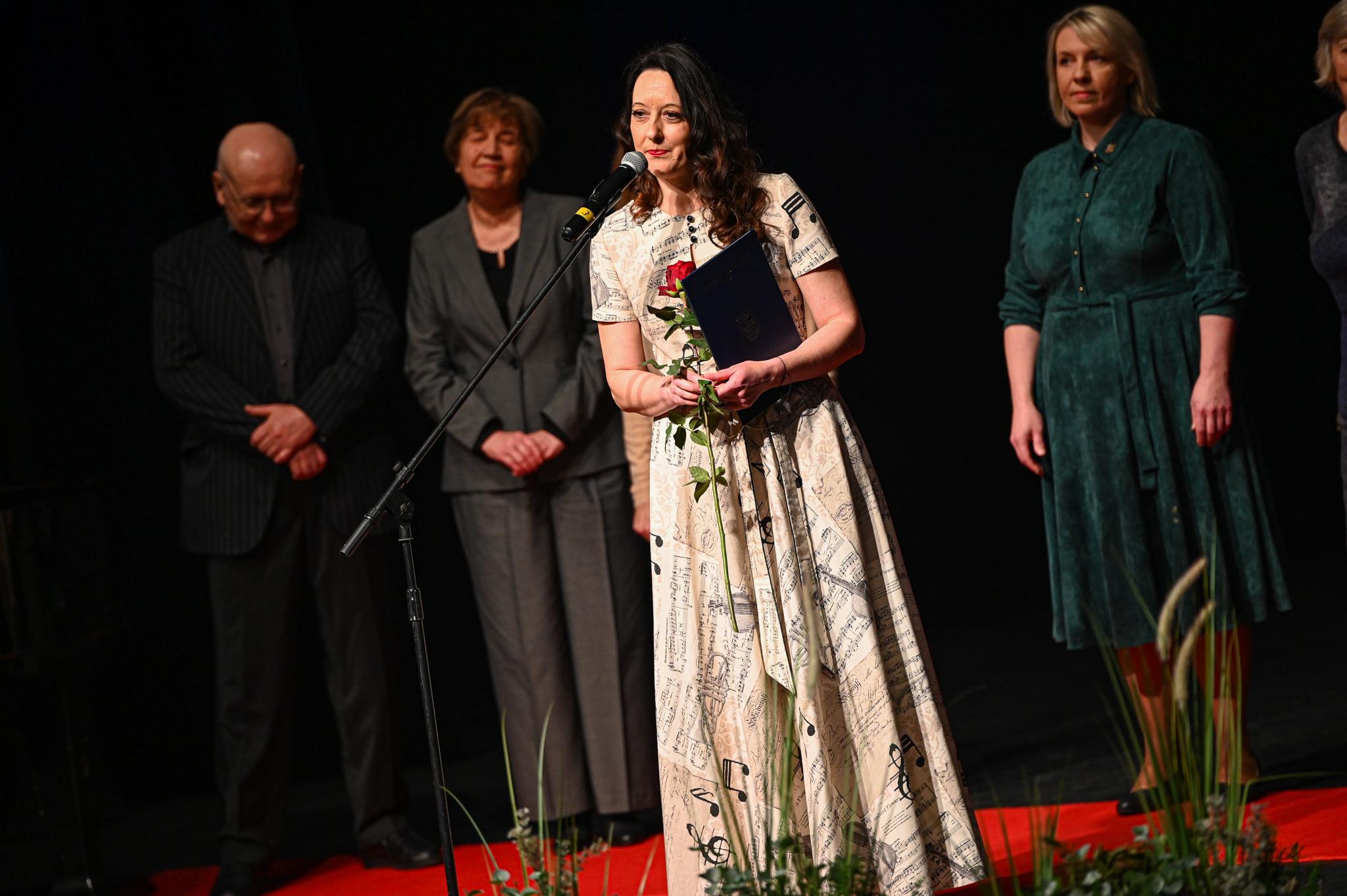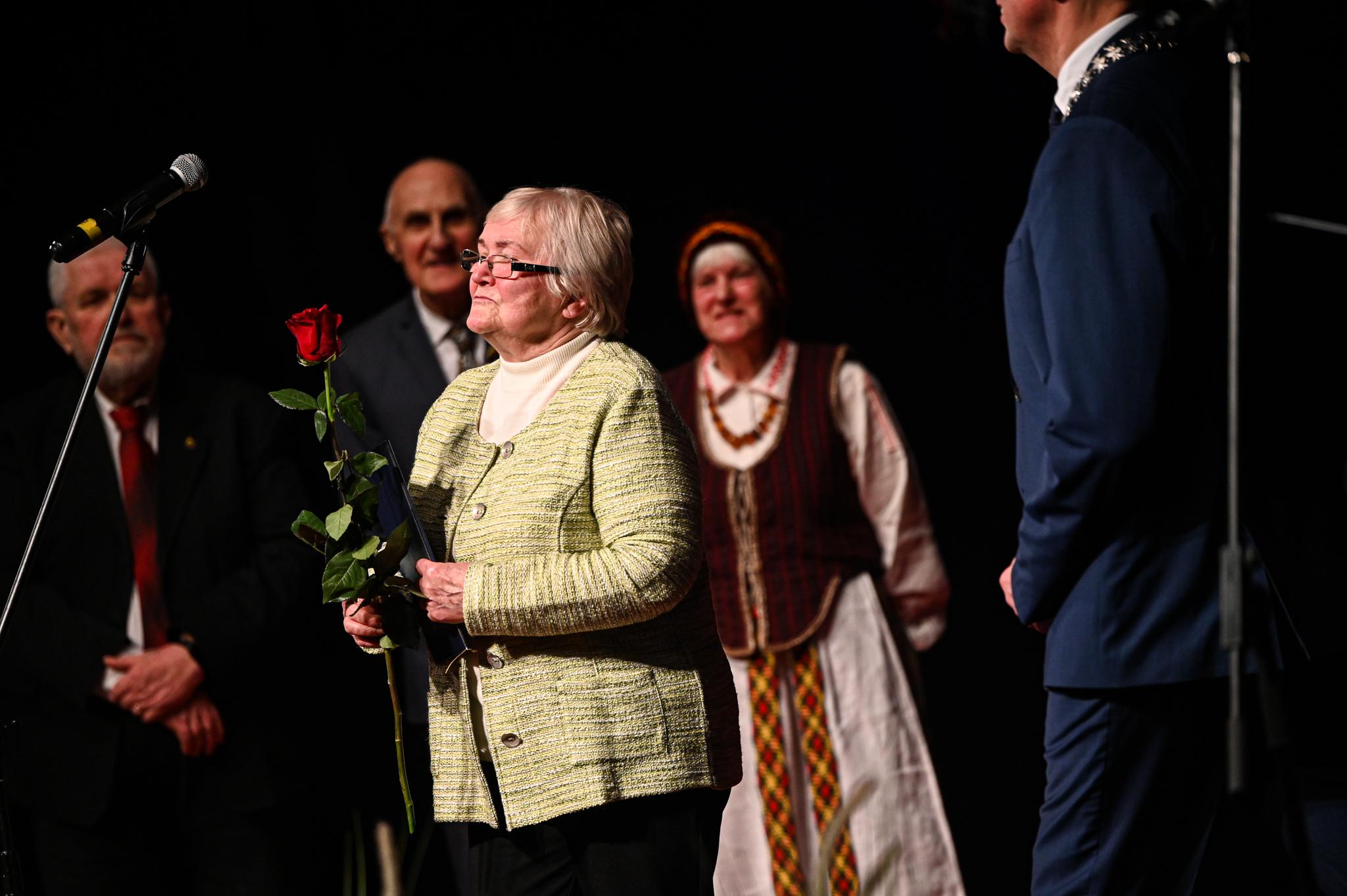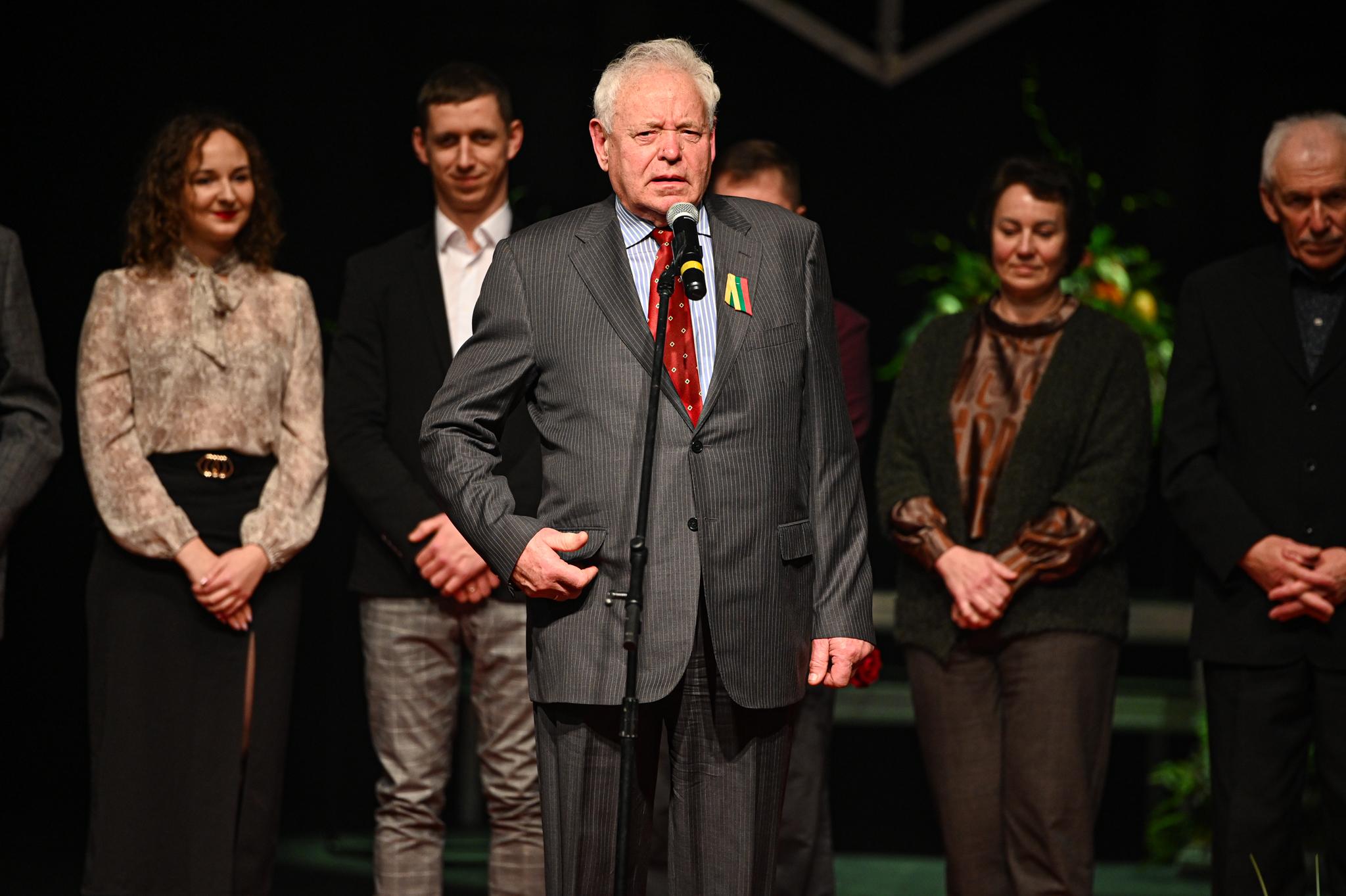 Padėkos žodžius tarė I. Aukštuolienė: „Labai jaudinanti akimirka, yra didžiulė garbė atsiimti tokį pripažinimą žmogaus, paženklinto valstybių datų. Šio žmogaus gimimo liudijime įrašyta, kad jis gimė liepos 6-ąją, o jo mirties liudijime įrašyta, kad jis šį pasaulį paliko kovo 11-ąją, o šį apdovanojimą atsiimame vasario 16-ąją. Visos trys pačios garbingiausios, pačios didžiausios valstybinės šventės pažymėjo šį žmogų, o šis žmogus dar yra mūsų tėtis. Ačiū už šį pripažinimą, ačiū gyvenimui, kad suteikė galimybė būti jo vaikais“, – dėkojo I. Aukštuolienė.