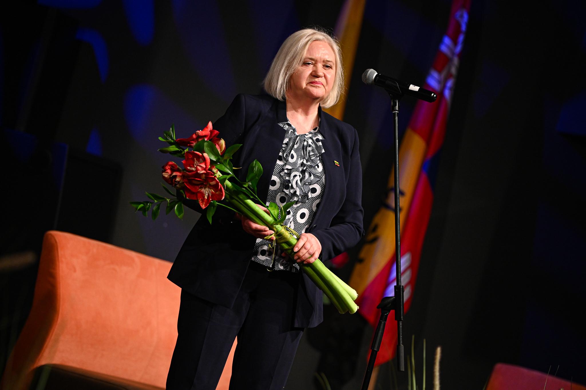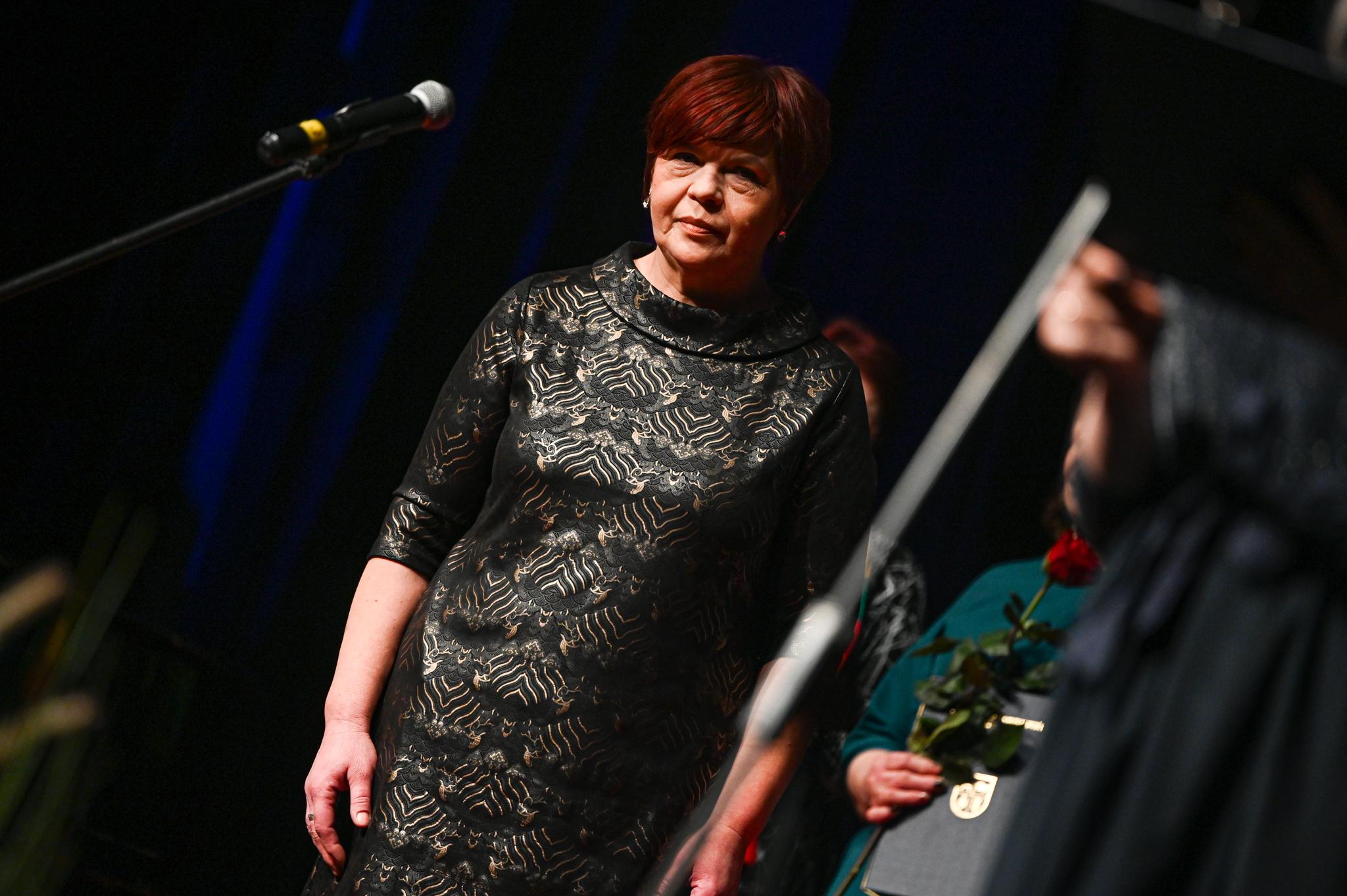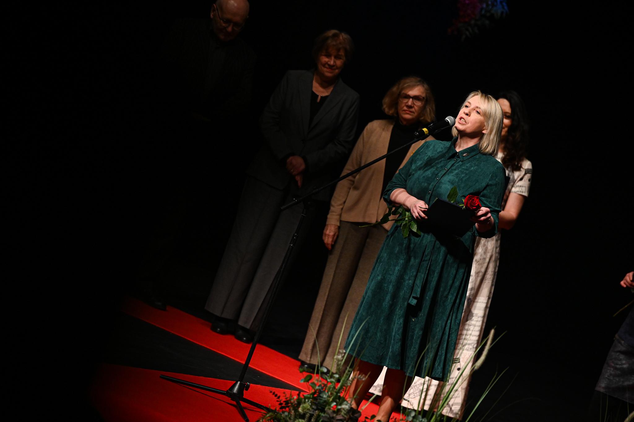 Padėkos žodžius tarė I. Aukštuolienė: „Labai jaudinanti akimirka, yra didžiulė garbė atsiimti tokį pripažinimą žmogaus, paženklinto valstybių datų. Šio žmogaus gimimo liudijime įrašyta, kad jis gimė liepos 6-ąją, o jo mirties liudijime įrašyta, kad jis šį pasaulį paliko kovo 11-ąją, o šį apdovanojimą atsiimame vasario 16-ąją. Visos trys pačios garbingiausios, pačios didžiausios valstybinės šventės pažymėjo šį žmogų, o šis žmogus dar yra mūsų tėtis. Ačiū už šį pripažinimą, ačiū gyvenimui, kad suteikė galimybė būti jo vaikais“, – dėkojo I. Aukštuolienė.