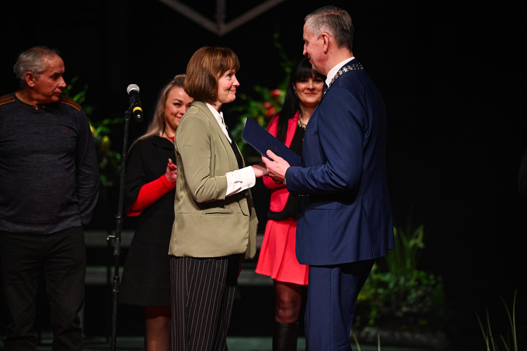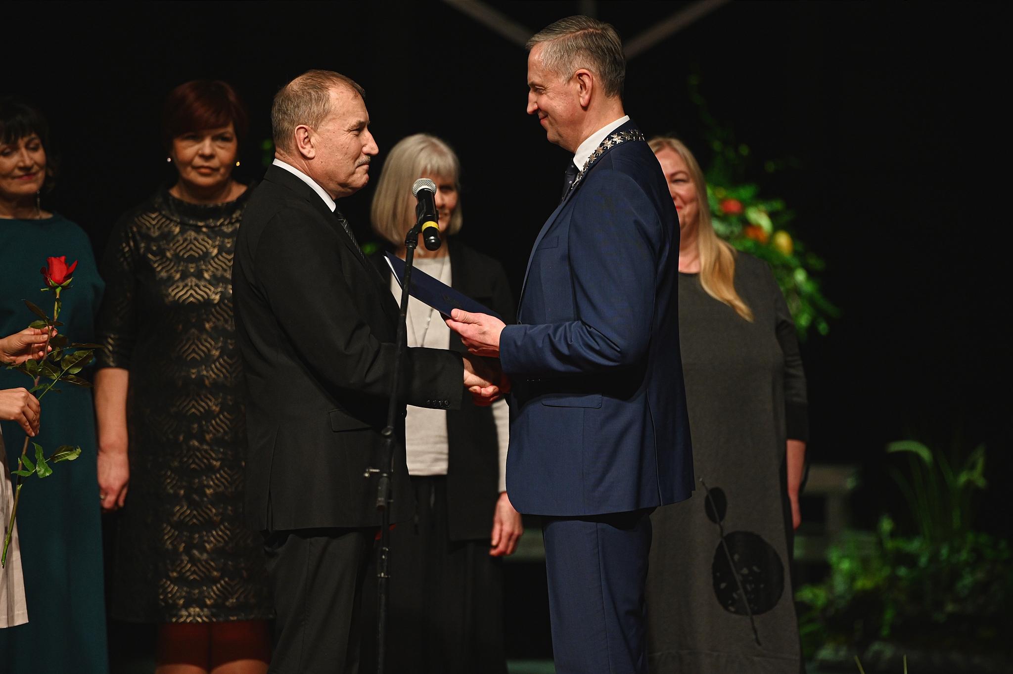 Vakaro pradžioje iškilmingai įteiktas Rokiškio krašto garbės piliečio ženklas Lašų ŽŪB ir UAB „Lašų duona“ įkūrėjui ir vadovui Zenonui Akramavičiui (po mirties). Šio ženklo atsiimti į sceną kilo Z. Akramavičiaus vaikai Eglė Akramavičiūtė, Iveta Aukštuolienė ir Vaidas Akramavičius.