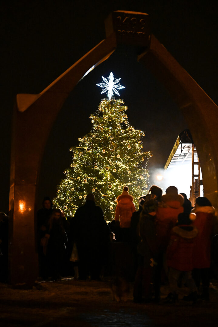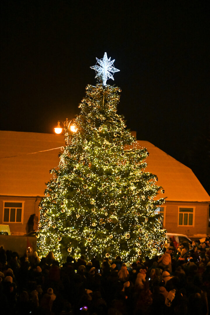Penktadienio vakarą Nepriklausomybės aikštėje įžiebta pagrindinė Rokiškio miesto Kalėdų eglė ir 100 „Gimtojo...“ skaitytojų padovanotų mažųjų eglučių, kurios jau kelerius metus tradiciškai papuošia miesto centrą.